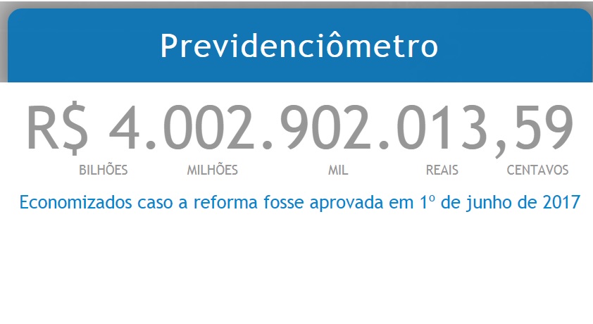 Os números são do Previdenciômetro, ferramenta criada pela Confederação Nacional da Indústria (CNI), que é atualizada a cada segundo e mostra ao país a importância das mudança nas regras para aposentadoria.