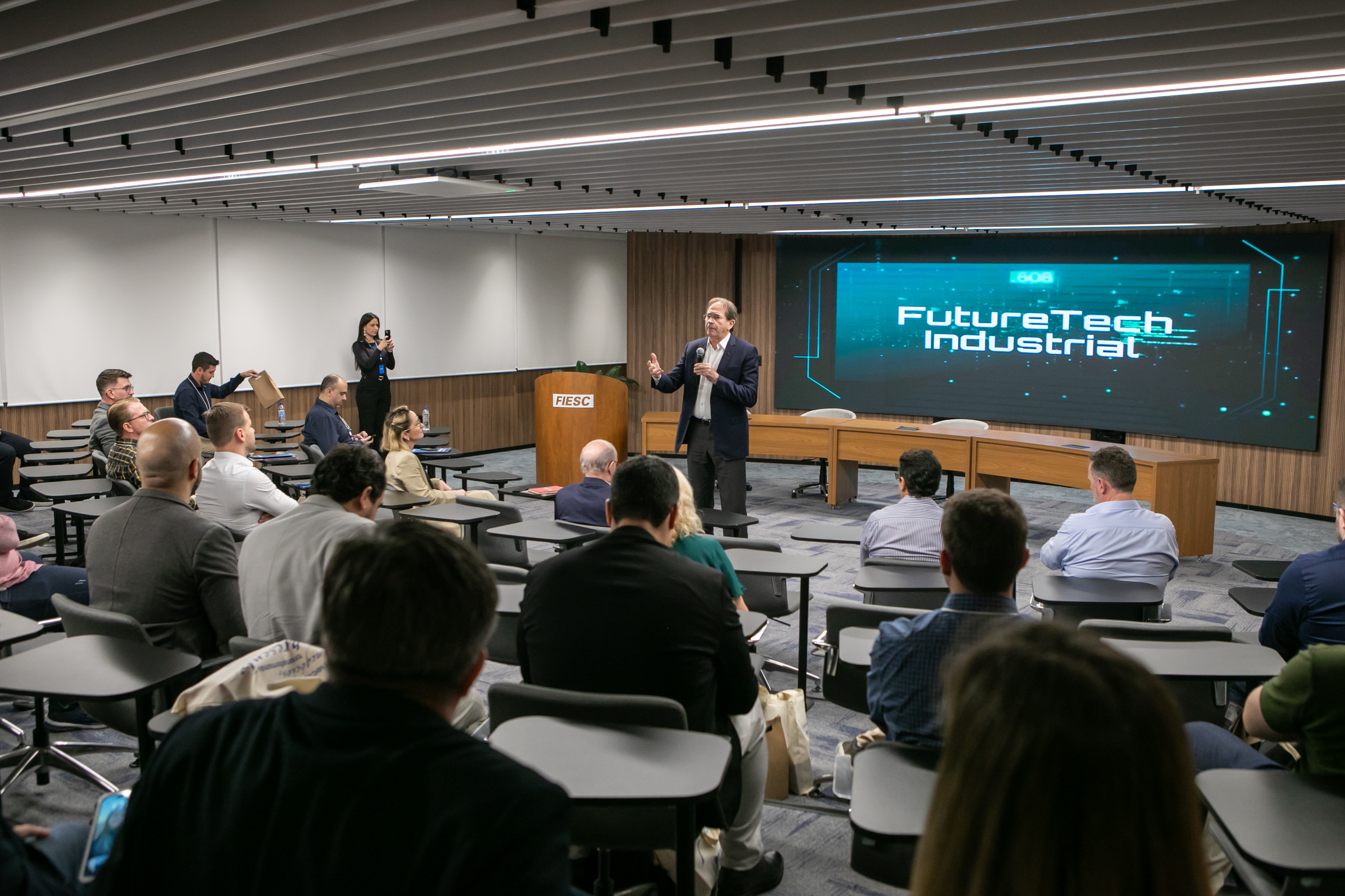 Florianópolis, 28.11.24 - As principais tendências tecnológicas que vão impactar a indústria em 2025 estão sendo discutidas no Futuretech Industrial — evento promovido pelo Centro das Indústrias (CIESC), nesta quinta-feira, dia 28, em Florianópolis. A iniciativa reúne especialistas em TI e tomadores de decisão da indústria.