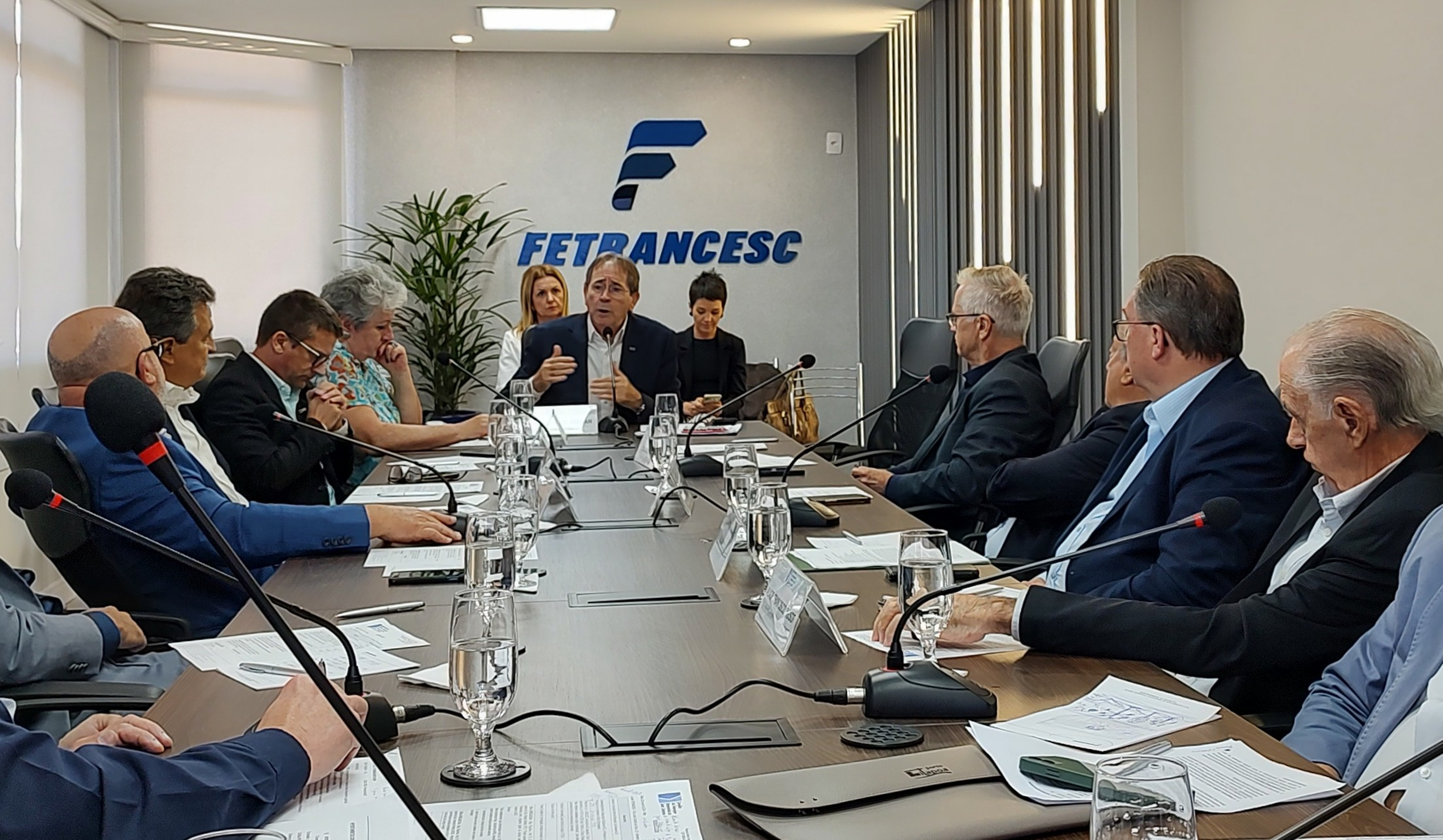 Florianópolis, 22.04.2024 - Em reunião nesta segunda-feira, dia 22, o Conselho das Federações Empresariais de Santa Catarina (COFEM) debateu a renovação da concessão do trecho norte da BR-101 e os gargalos no setor portuário catarinense. O encontro foi realizado na sede da Federação dos Transportes (FETRANCESC), em Florianópolis.