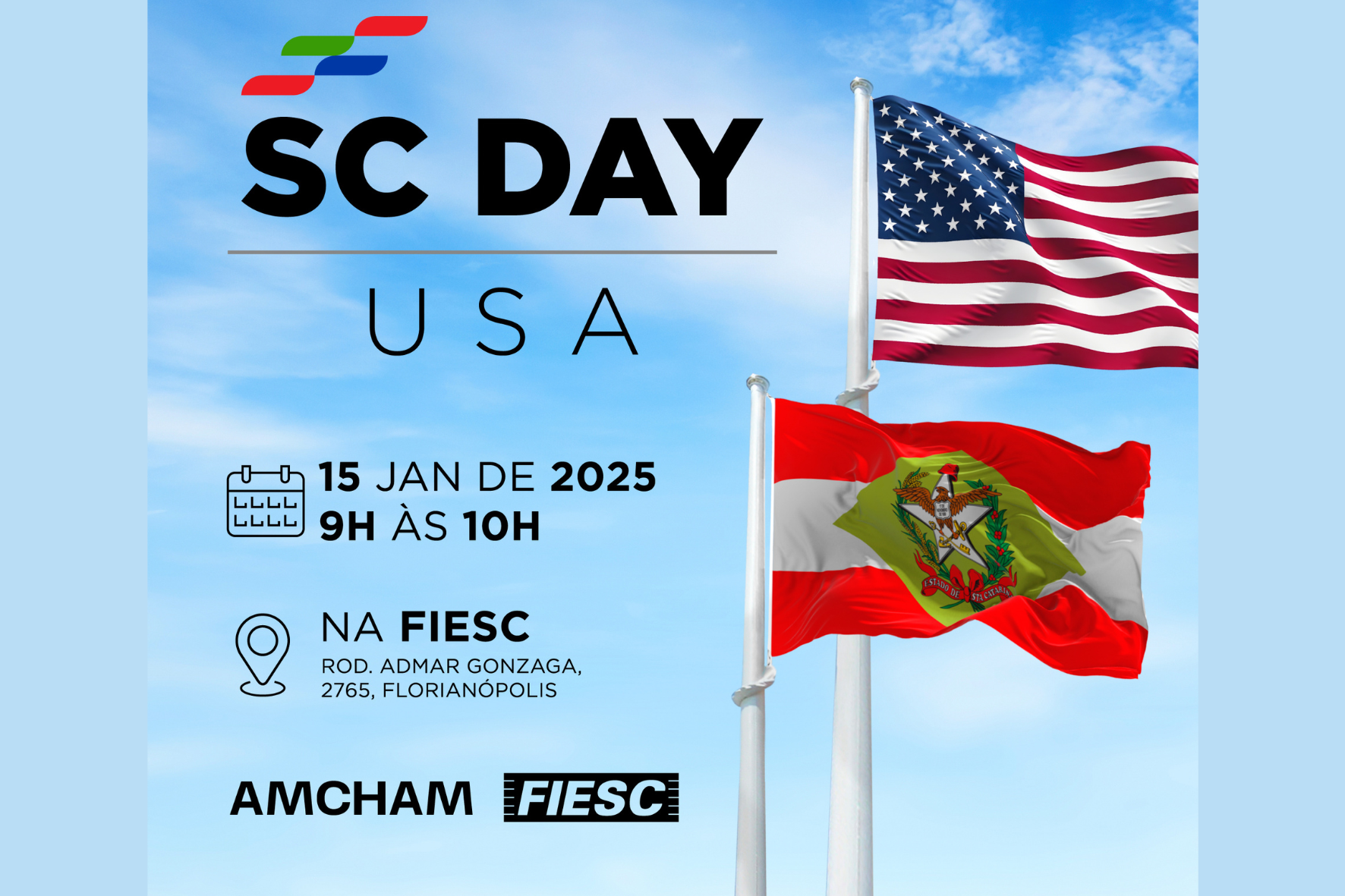 Florianópolis, 07.01.25 - Com foco no mercado de móveis, a FIESC lança o SC Day USA: High Point Market, no dia 15 de janeiro, das 9h às 10h, durante evento na sede da entidade, em Florianópolis, e também com transmissão pela plataforma Zoom. A iniciativa é realizada em parceria com a Câmara Americana de Comércio para o Brasil (AMCHAM).