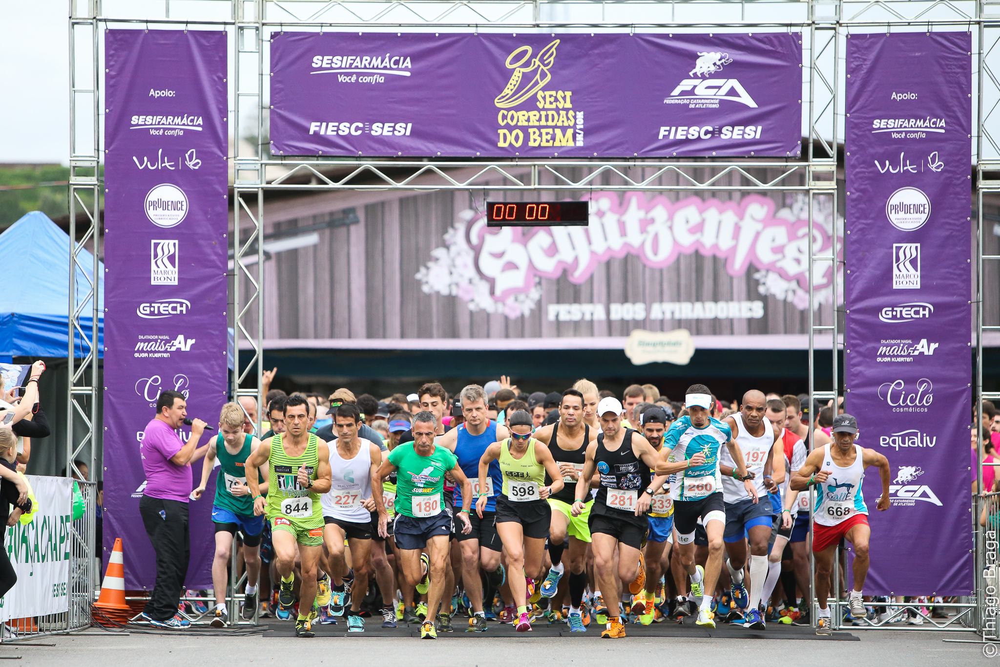 Jaraguá do Sul, 05.12.2016 – O circuito Corridas do Bem, iniciativa do SESI/SC, entidade da FIESC, que objetiva incentivar o voluntariado, a qualidade de vida e o bem-estar, concluiu neste domingo (04) a última etapa do ano em Jaraguá do Sul. O evento, que reuniu 1.080 participantes nas provas de corrida e caminhada, contou também com grande público que acompanhou as atividades pelas ruas e no Parque Municipal de Eventos.