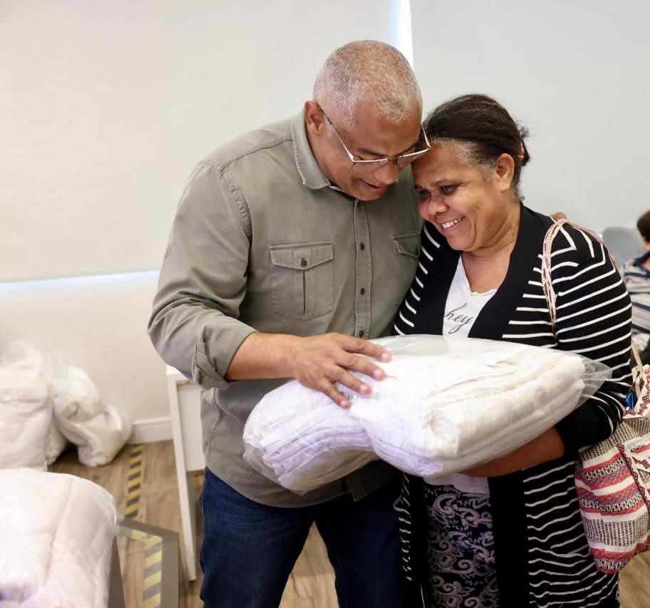 Florianópolis, 20.03.2025 – A Döhler, indústria têxtil de Joinville que exporta para mais de 20 países, entregou 300 toalhas de banho e rosto e 200 kits com lençol, fronha e colcha a moradores de Paraisópolis, comunidade de São Paulo (SP).