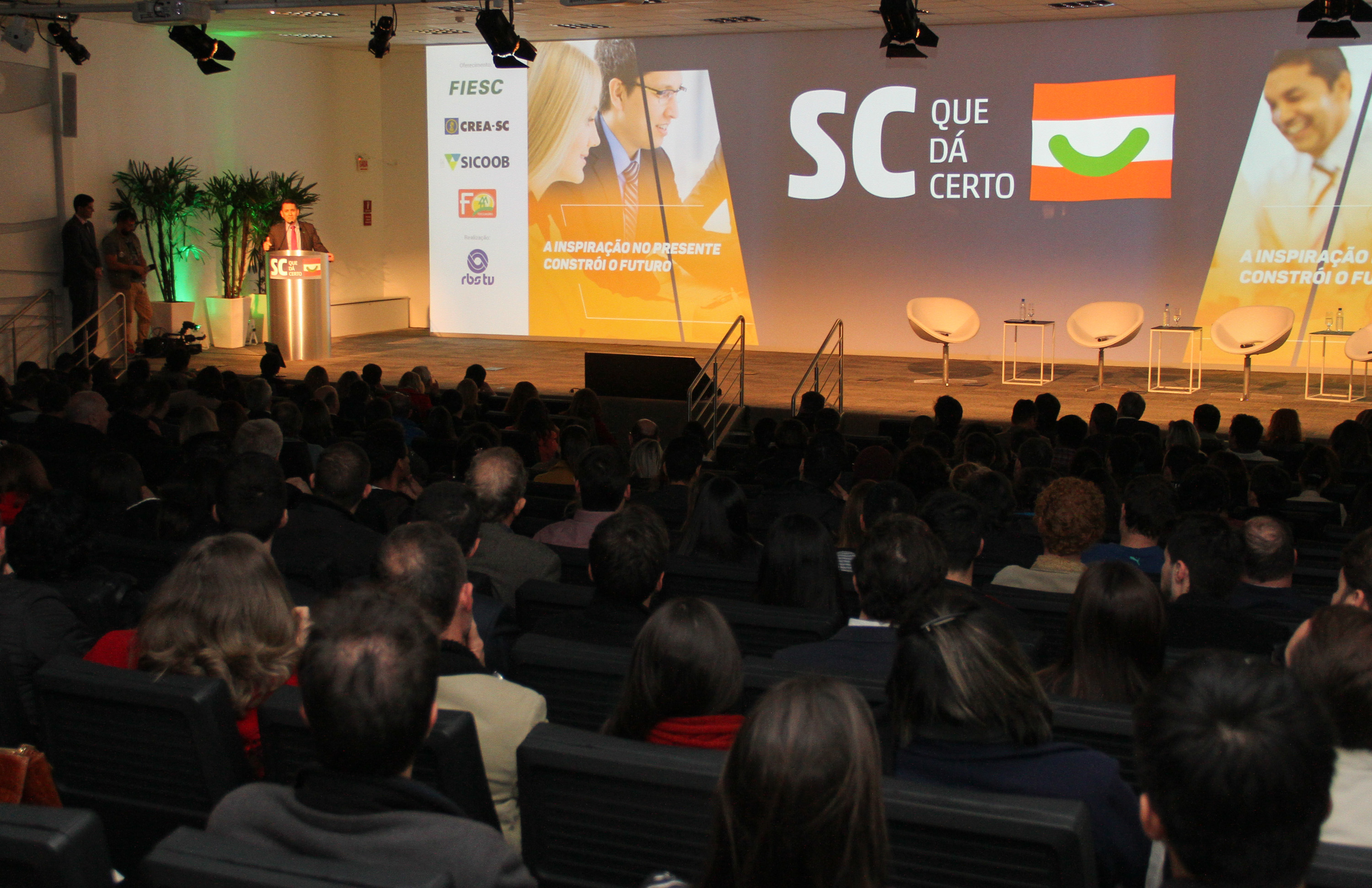 Florianópolis, 21.7.2016 – A trajetória das empresas Nexxera, Imaginarium e Dona Fulana foi apresentada durante o painel SC que dá Certo, iniciativa do Grupo RBS que conta com o apoio da FIESC. O encontro, realizado na noite desta quarta-feira (20), em Florianópolis, reuniu cerca de 400 participantes. Na abertura do evento, o diretor de marketing e relacionamento com o mercado da FIESC, Carlos Roberto de Farias, disse que o empreendedorismo está presente em todas as regiões catarinenses. Apesar da crise, que impõe desafios às empresas, muitas seguem crescendo, a exemplo das companhias que participaram do painel.