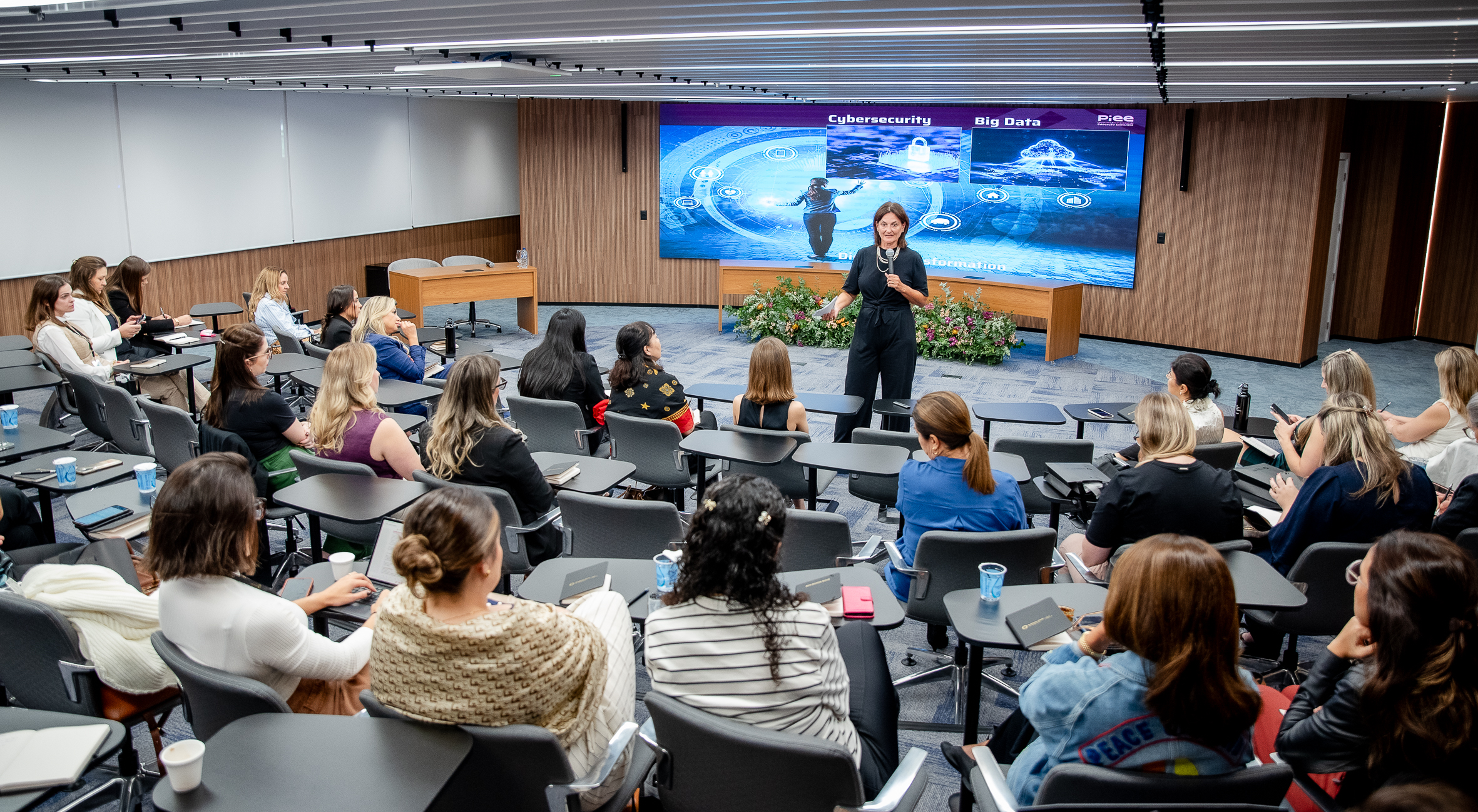 Florianópolis, 7.05.2024 - De acordo com o Fórum Econômico Mundial, estão entre os riscos globais mais graves para as economias e sociedades fatores como desinformação, clima extremo, polarização social e/ou política e insegurança cibernética. Para enfrentar estes desafios, executivas precisam desenvolver habilidades sociais e tecnológicas. É o que defende a ex-presidente da IBM no Brasil, Katia Vaskys, que participou nesta terça-feira (7) do Programa Internacional de Educação Executiva (PIEE), da Academia FIESC de Negócios. A formação é exclusiva para mulheres.
