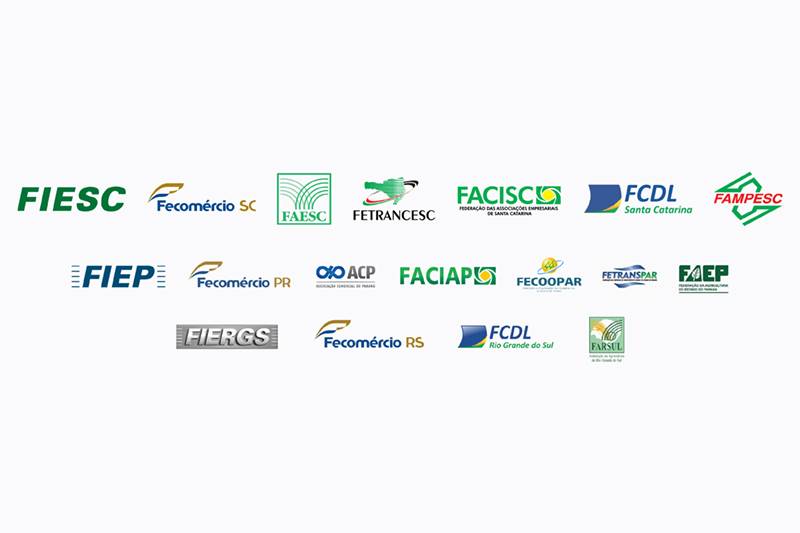 O documento é assinado pelas Federações das Indústrias (FIESC, FIEP e FIERGS), do Comércio (Fecomércio/SC, Fecomércio/PR e Fecomércio/RS), da Agricultura (FAESC, FAEP e FARSUL), dos Transportes (Fetrancesc e Fetranspar), das Câmaras de Dirigentes Lojistas (FCDL/SC e FCDL/RS), das Associações Empresariais (FACISC e FACIAP), além da Associação Comercial do Paraná (ACP), e da Federação e Organização das Cooperativas do Paraná (Fecoopar).