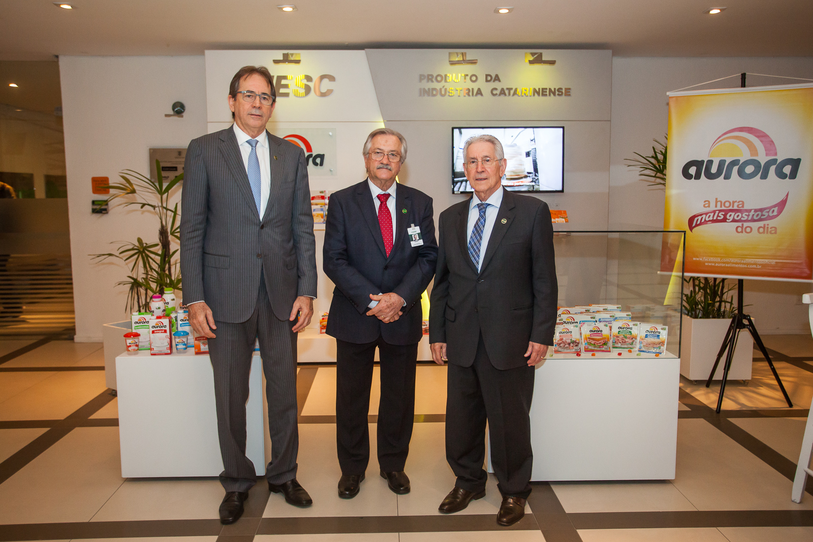 Florianópolis, 21.7.2017 – A Aurora, de Chapecó, expõe seus produtos no Espaço Indústria, ambiente localizado na Federação das Indústrias de Santa Catarina (FIESC), em Florianópolis, para mostrar o trabalho das empresas do setor. A Aurora é formada por 13 cooperativas filiadas, mais de 72 mil famílias associadas, 26 mil funcionários da Aurora Alimentos e mais de 8 mil empregados das cooperativas filiadas ao Sistema da Cooperativa Central Aurora Alimentos. A empresa atua na industrialização e comercialização de carnes suínas, aves, lácteos, massas, vegetais e suplementos para nutrição animal, exporta para 70 países e está presente em mais de 100 mil pontos de vendas no Brasil.