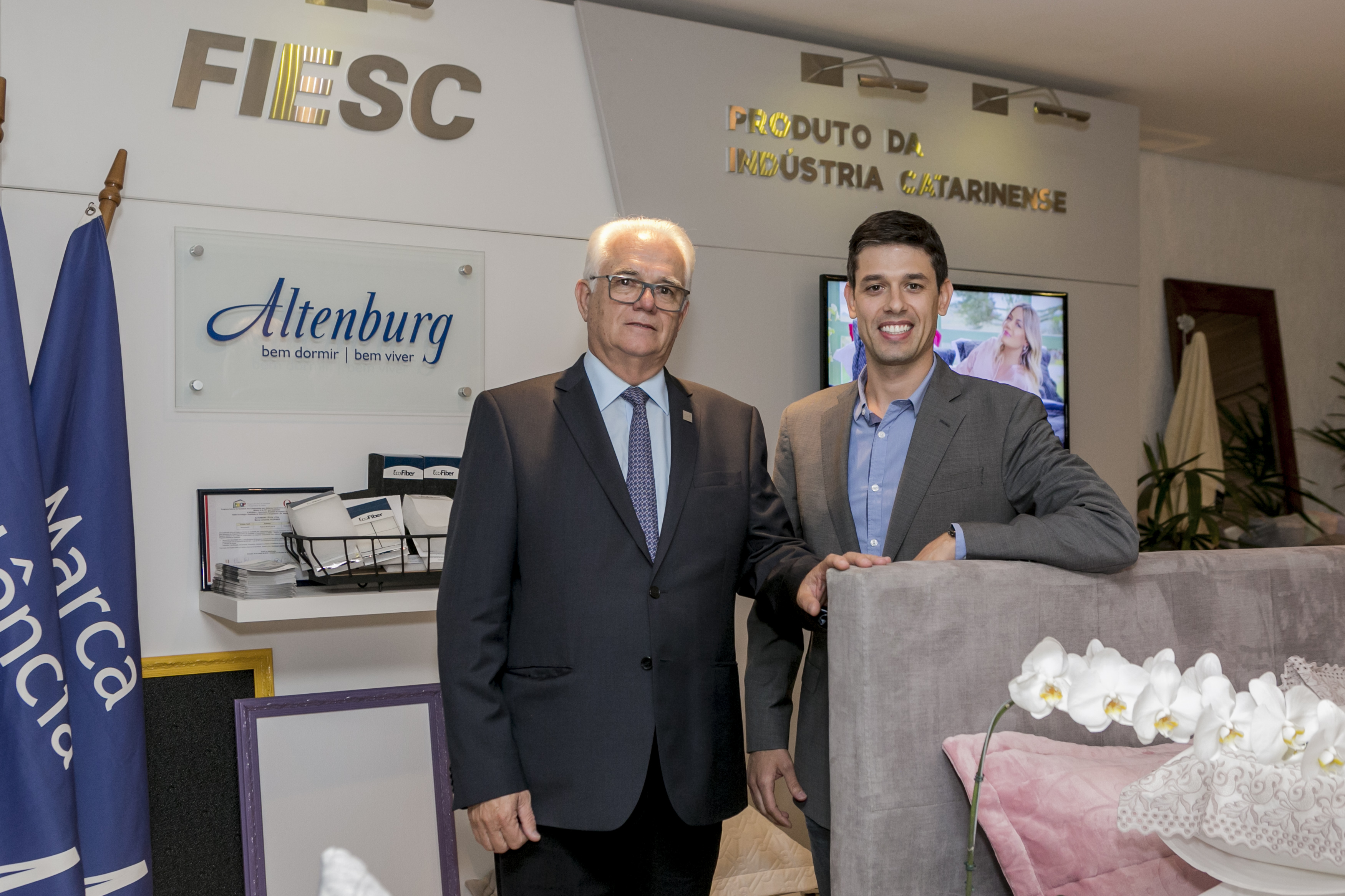 Florianópolis, 20.4.2018 – A Altenburg, indústria do Vale do Itajaí e uma das principais do setor têxtil, é a empresa que expõe no Espaço Indústria a partir desta sexta-feira (20). Sua origem está em 1922, quando Johanna Altenburg começou a produzir acolchoados manualmente para garantir o sustento da família. A empresa, anos mais tarde, passou às mãos de Arno e Anna Altenburg. Hoje, o neto Rui Altenburg conduz o empreendimento. Ele e seu filho Tiago contaram um pouco da história da marca na reunião de diretoria da FIESC.