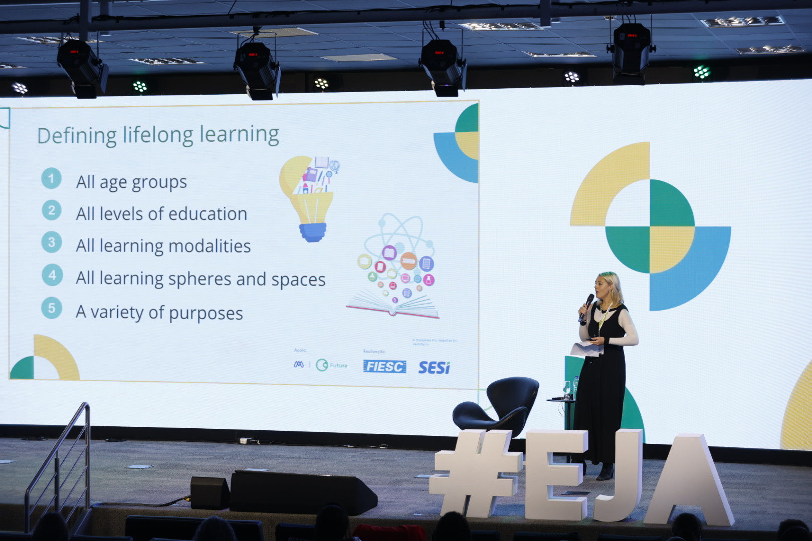Katie Jones, do Reino Unido, consultora da UNESCO para Aprendizagem ao Longo da Vida, afirmou que o conceito se tornou essencial frente a desafios como avanço tecnológico e envelhecimento populacional. Segundo ela, no mundo, 754 milhões de adultos ainda carecem de alfabetização básica, e a solução passa por políticas flexíveis e reconhecimento de saberes prévios.