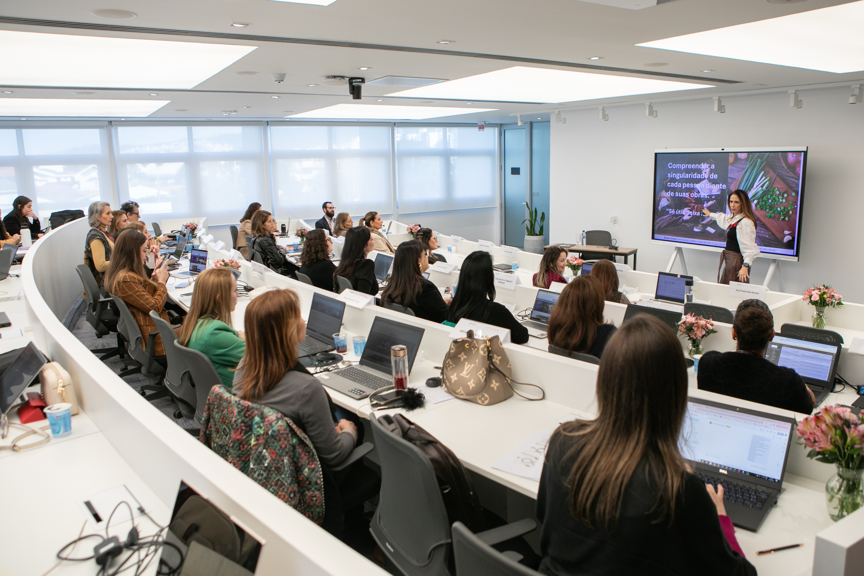 “As mulheres nascem com um radar para buscar o aperfeiçoamento, por isso investem tanto em qualificação e se destacam em cargos de liderança”, acredita Jaqueline Schlachter, CEO do grupo Simoneia, que participa pela primeira vez de um treinamento sobre inteligência artificial.