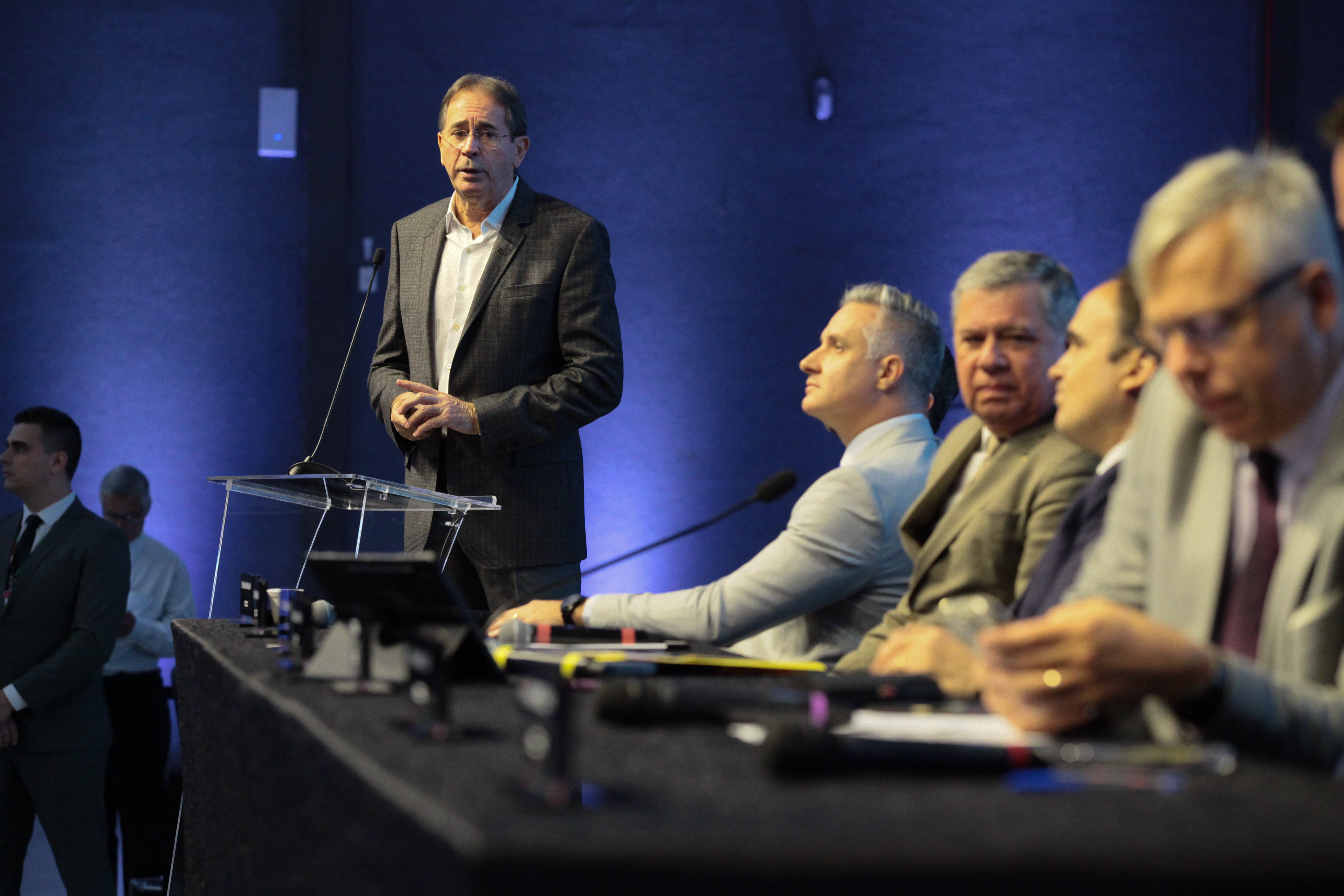 Florianópolis, 04.06.24 - O presidente da Federação das Indústrias de Santa Catarina (FIESC), Mario Cezar de Aguiar, destacou a relevância de Joinville para a indústria catarinense e para a economia de Santa Catarina na sessão itinerante da Assembleia Legislativa na cidade nesta terça-feira. Em sua apresentação aos deputados e participantes, Aguiar explicou que Joinville tem o maior PIB industrial do estado, com a indústria representando 35,5% da geração de riqueza da cidade.