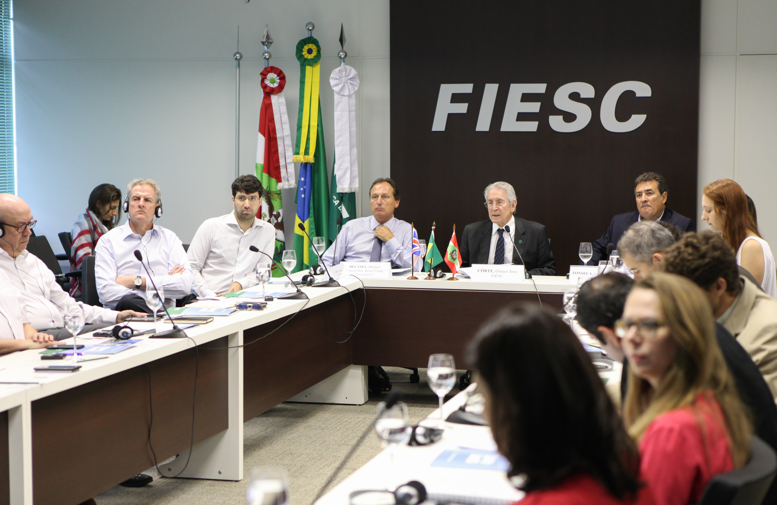 Florianópolis, 21.2.2018 – A Federação das Indústrias de Santa Catarina (FIESC) recebeu delegações do Reino Unido e da Coreia do Sul, nesta quarta-feira (21), em Florianópolis. A comitiva do Reino Unido busca investimentos em infraestrutura aeroportuária. O grupo sul-coreano estuda investir US$ 2 bilhões no Estado para produzir equipamentos fotovoltaicos e de LED. “Sempre recebemos com muito interesse a visita de empresários para mostrarmos o que é Santa Catarina, sobretudo o que é a indústria”, declarou o presidente da FIESC, Glauco José Côrte, que conduziu as reuniões. “Estamos abrindo possibilidades de grandes parcerias. Temos todo interesse em apoiar e participar do processo que esperamos que culmine no investimento. Temos uma estrutura preparada para treinamento técnico e profissional dos trabalhadores”, completou.