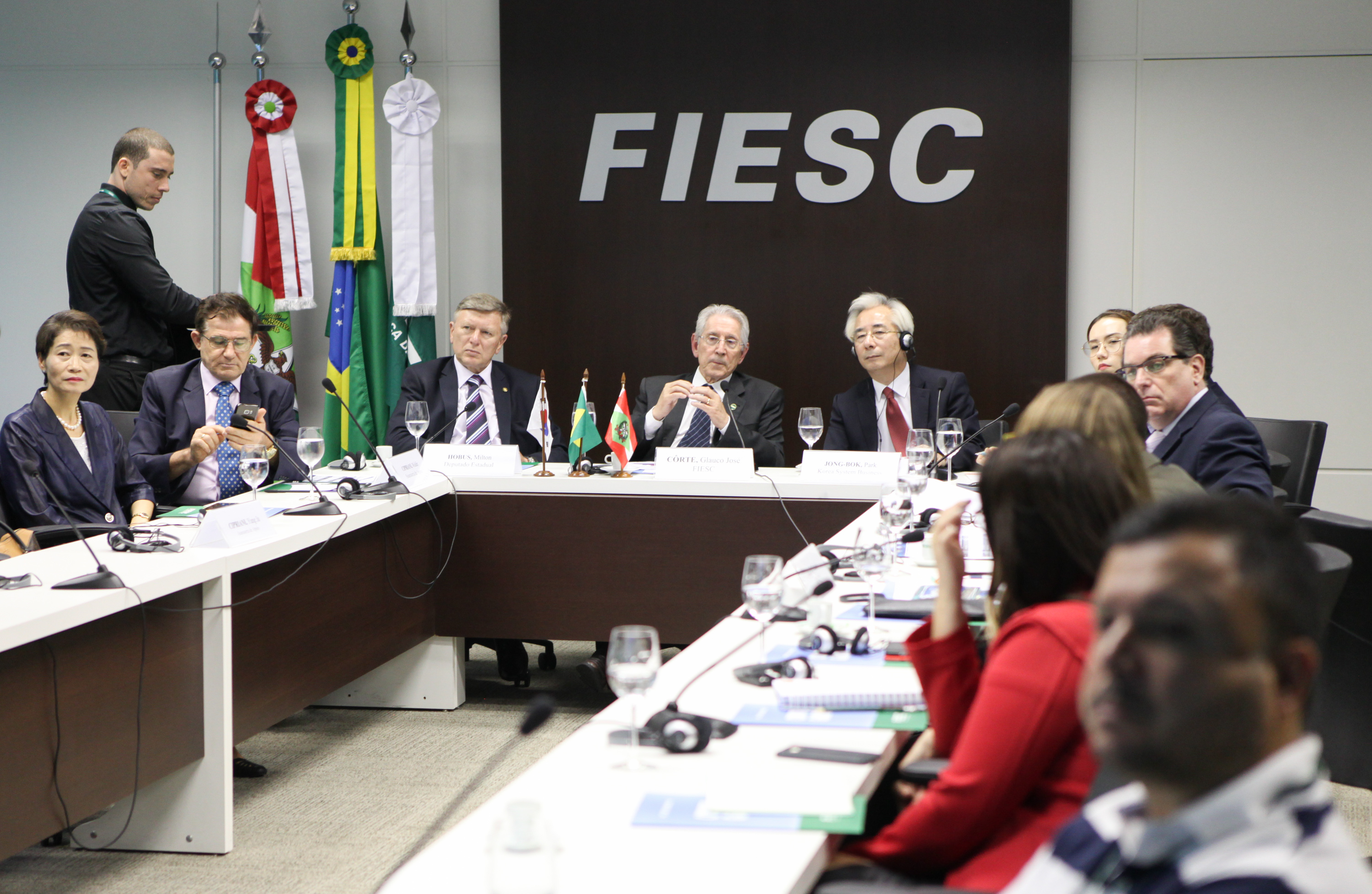 Nas reuniões com representantes da Coreia do Sul e do Reino Unido, o diretor de relações institucionais e industriais da FIESC, Carlos Henrique Ramos Fonseca, apresentou o trabalho da Investe SC, agência resultado de parceria entre o Governo de SC e a FIESC, que trabalha para promover o desenvolvimento socioeconômico, por meio de incentivos a novos negócios e expansão das empresas do Estado.