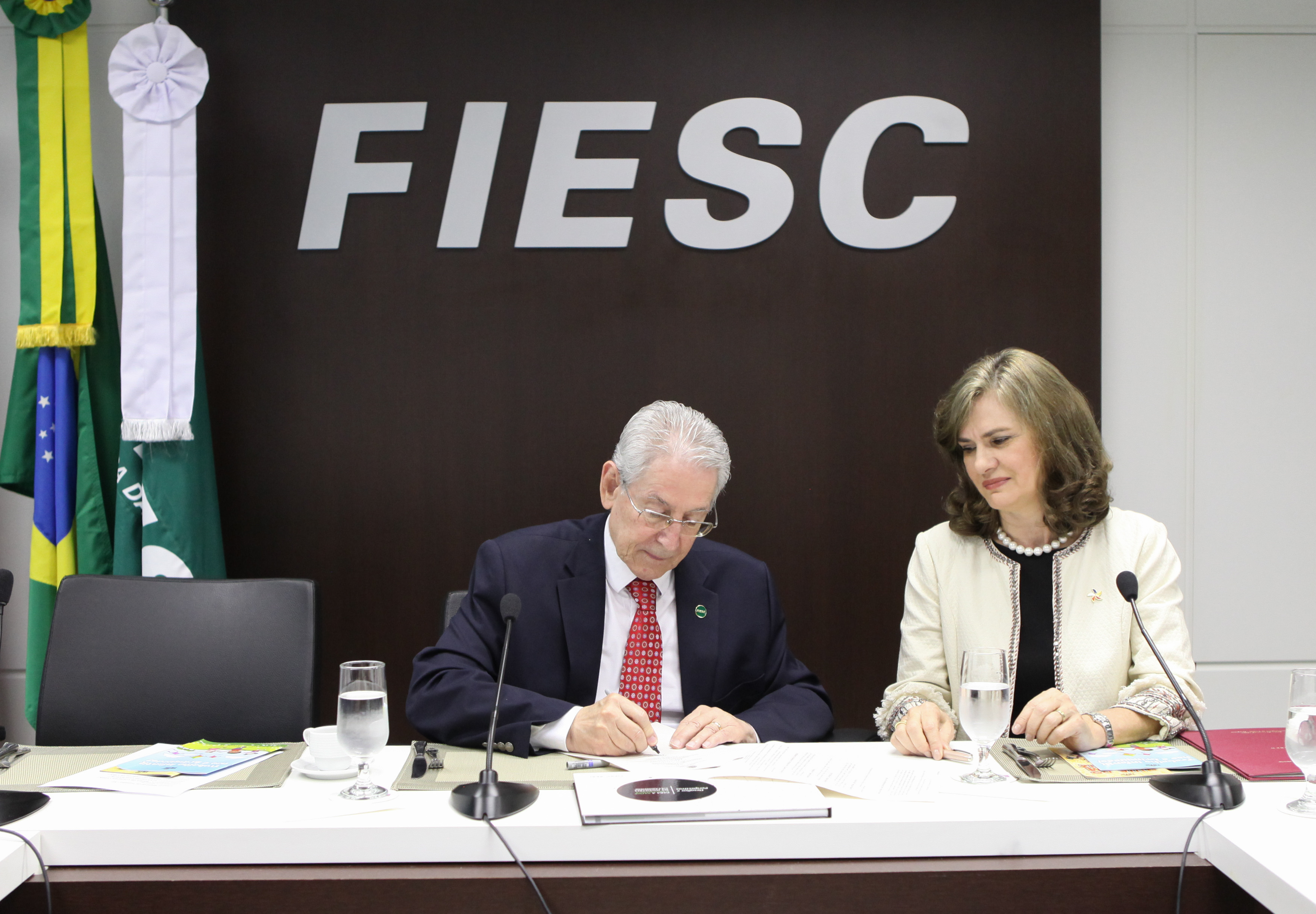 Florianópolis, 27.11.2017 – A Federação das Indústrias de Santa Catarina (FIESC) e o Tribunal Regional do Trabalho (TRT-SC) firmaram acordo de cooperação no âmbito do Programa de Combate ao Trabalho Infantil e de incentivo à aprendizagem. O termo foi assinado na manhã desta segunda-feira (27), durante reunião, em Florianópolis, com a presença de empresários, juízes, desembargadores e executivos de entidades da FIESC. O presidente da FIESC, Glauco José Côrte, destacou que o objetivo é formalizar a parceria instituída há algum tempo e reiterar o apoio ao trabalho do Tribunal na área. Ele salientou as iniciativas de SESI e SENAI em educação e saúde e segurança do trabalhador.