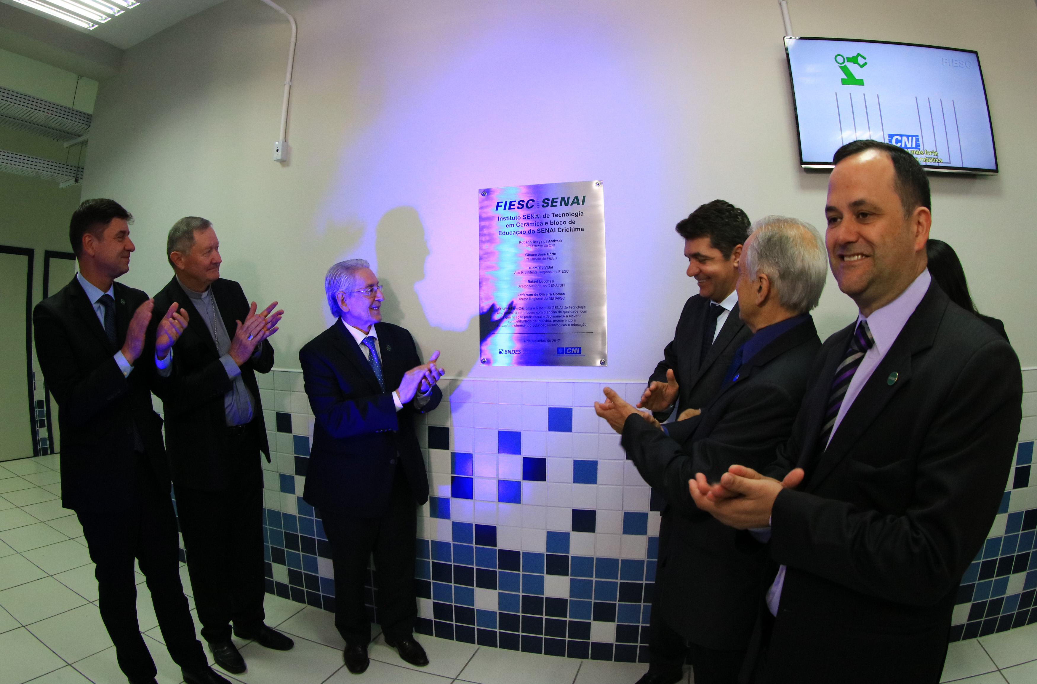 O diretor regional do SENAI/SC, Jefferson de Oliveira Gomes, lembrou que o SENAI forma por ano 2 milhões de meio de trabalhadores em todo o País, com índice de empregabilidade de 80%. “Em Santa Catarina, que hoje tem 7 milhões de habitantes, ao longo da história, já formamos mais de 2,5 milhões de pessoas, com esse índice de 80% de empregabilidade”, ressaltou. Gomes destacou ainda que, ao lado da educação profissional, o SENAI passou a investir em inovação e tecnologia para apoiar o setor industrial. “Aqui, no Instituto de Tecnologia em Cerâmica, que estamos entregando hoje, temos o desenvolvimento de telhas com placas de captação de energia solar e de cerâmica que inibe a presença de micróbios”, destacou.