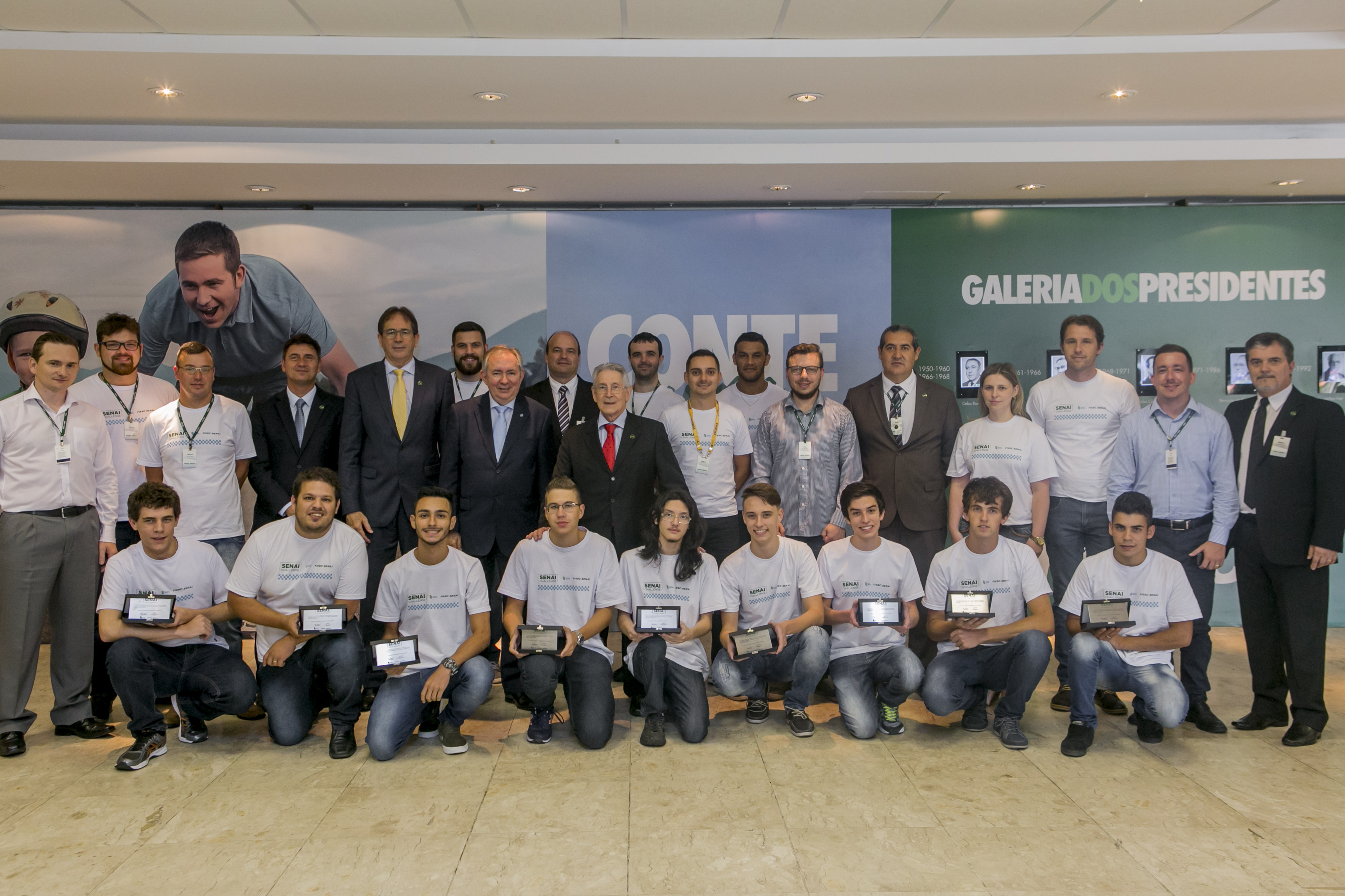 Florianópolis, 27.01.2017 – Os alunos e docentes das equipes vencedoras dos Desafios SENAI Challenge 2016 foram homenageados pela diretoria da FIESC, reunida nesta sexta (27), em Florianópolis. Lançada em 2016, a iniciativa tem o objetivo de aliar teoria e prática em cursos técnicos da instituição. Na sua primeira edição, foram realizados desafios em kart elétrico (para estudantes de mecânica), Robótica Móvel (para cursos de automação e mecatrônica) e soluções digitais (para alunos de cursos da área de informática).