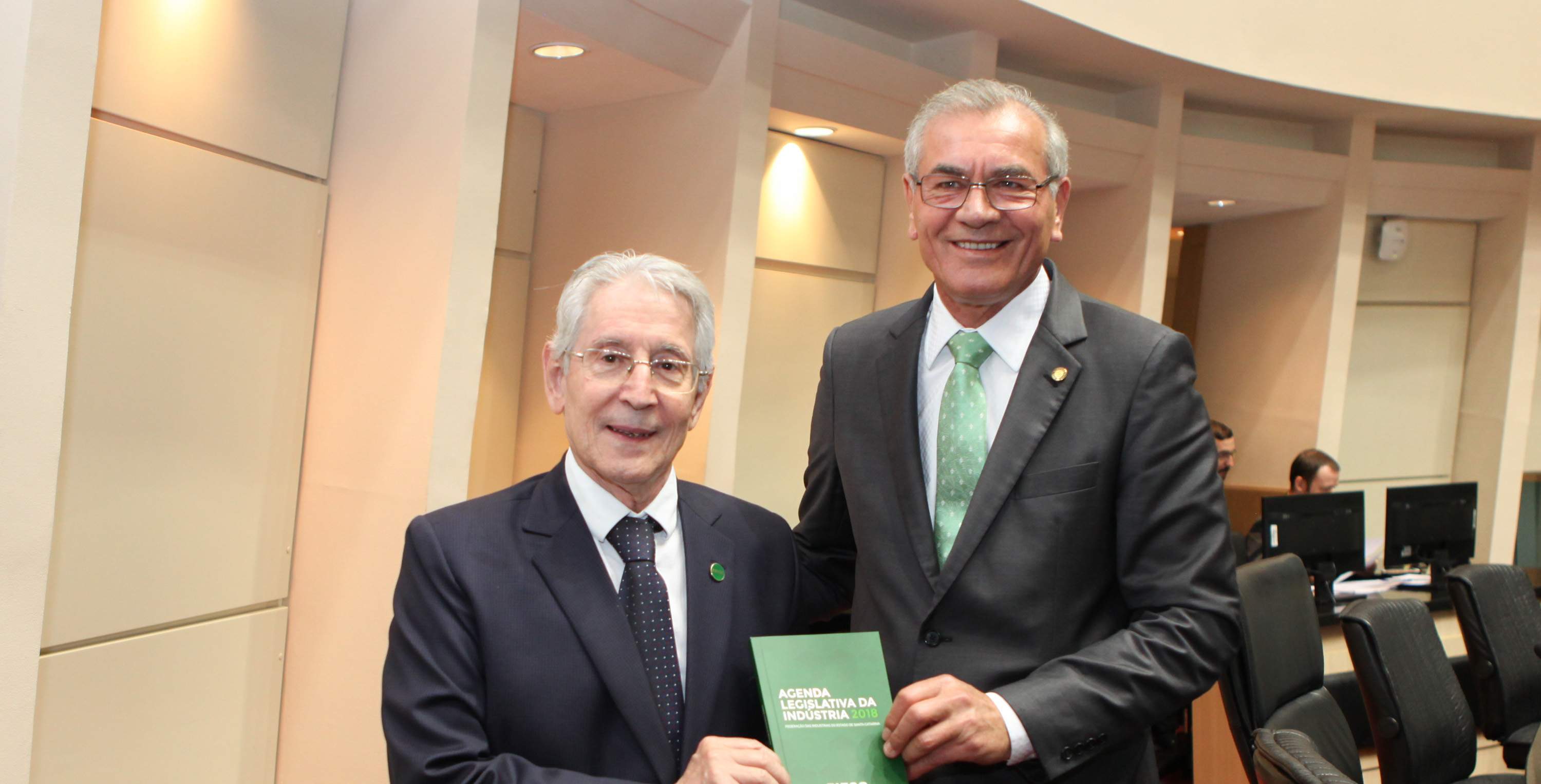 Florianópolis, 28.3.2018 – A Federação das Indústrias de Santa Catarina (FIESC) lançou a Agenda Legislativa da Indústria 2018, nesta quarta-feira (28), durante sessão na Assembleia Legislativa (Alesc), em Florianópolis. O documento está na 10ª edição e reúne o posicionamento da entidade sobre 43 projetos de interesse da indústria que tramitaram no legislativo estadual entre 15 de maio de 2017 e 28 de fevereiro de 2018. As propostas são ligadas às áreas administração e políticas públicas (6 proposições), meio ambiente (8 proposições), econômico e tributário (17 proposições), institucional (3 proposições) e infraestrutura (9 proposições).