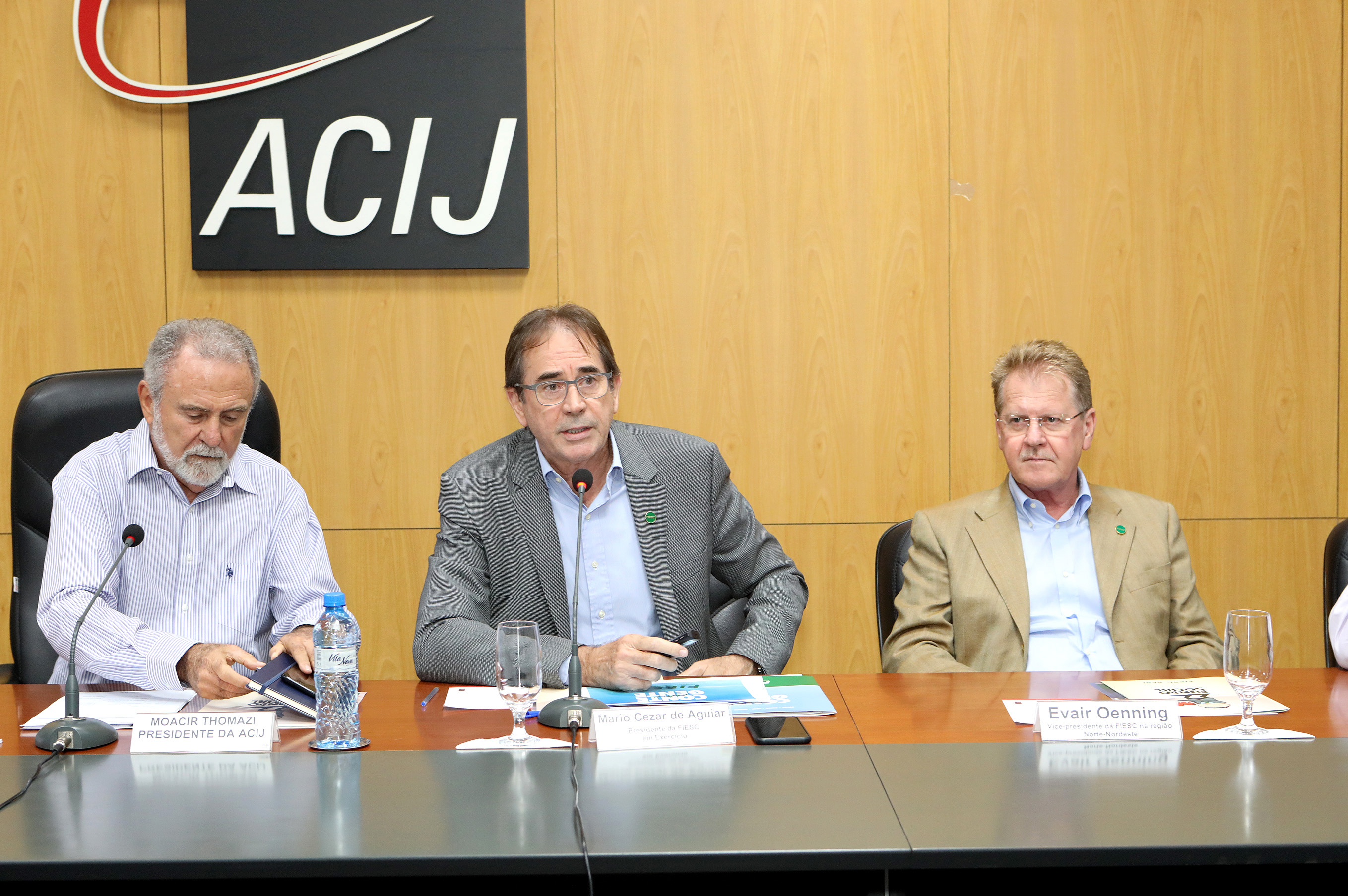 Joinville, 23.4.2018 – A Federação das Indústrias de Santa Catarina (FIESC), por meio do SESI e em parceria com a Associação Empresarial de Joinville (ACIJ), lançou nesta segunda-feira (23) o Fundo Social em Joinville. O termo de parceria, em prol do desenvolvimento da cultura dos incentivos fiscais, foi assinado entre as entidades durante a reunião semanal da ACIJ.
