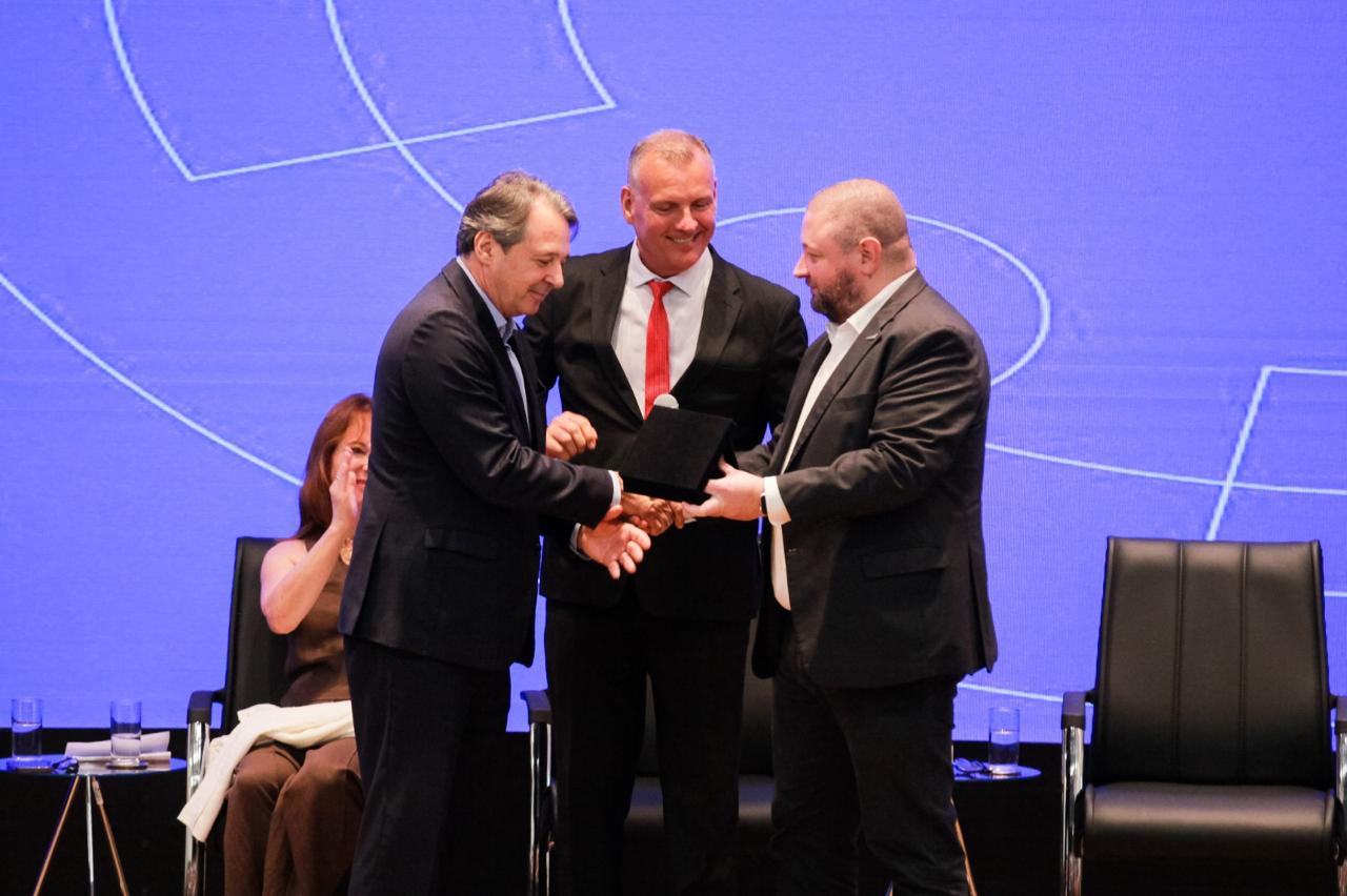 Durante o evento, o diretor institucional e jurídico da FIESC, Carlos José Kurtz, negociador do piso representando as federações patronais, e Ivo Castanheira, diretor sindical do Dieese/SC e da FECESC, líder da negociação representando os trabalhadores, foram homenageados pela Superintendência Regional do Trabalho em Santa Catarina pelos esforços em prol da negociação do piso regional.