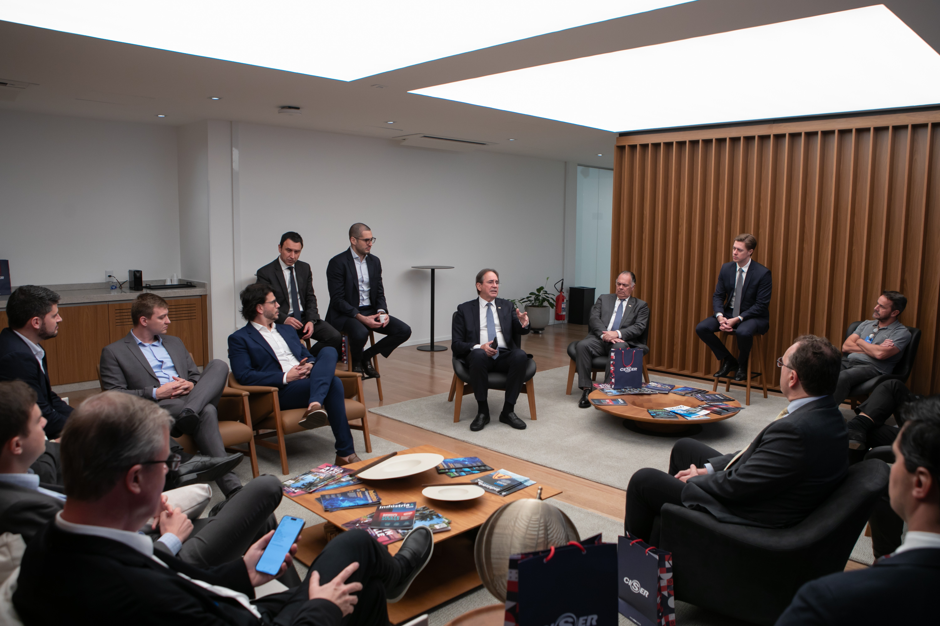 Florianópolis, 25.10.2024 - Industriais catarinenses que participaram de imersão ao ecossistema de inovação dos Estados Unidos compartilharam suas experiências com a diretoria da Federação das Indústrias (FIESC), nesta sexta-feira, dia 25. A FIESC liderou, em outubro, um grupo de 27 empresários de SC que participaram do SC Week, um programa de formação no Instituto de Tecnologia de Massachusetts (MIT), além de visitar a Universidade de Harvard. Nesta quinta e sexta, parte da comitiva reuniu-se em Florianópolis e conheceu o trabalho do Instituto SENAI de Sistemas Embarcados e a Academia FIESC de Negócios.