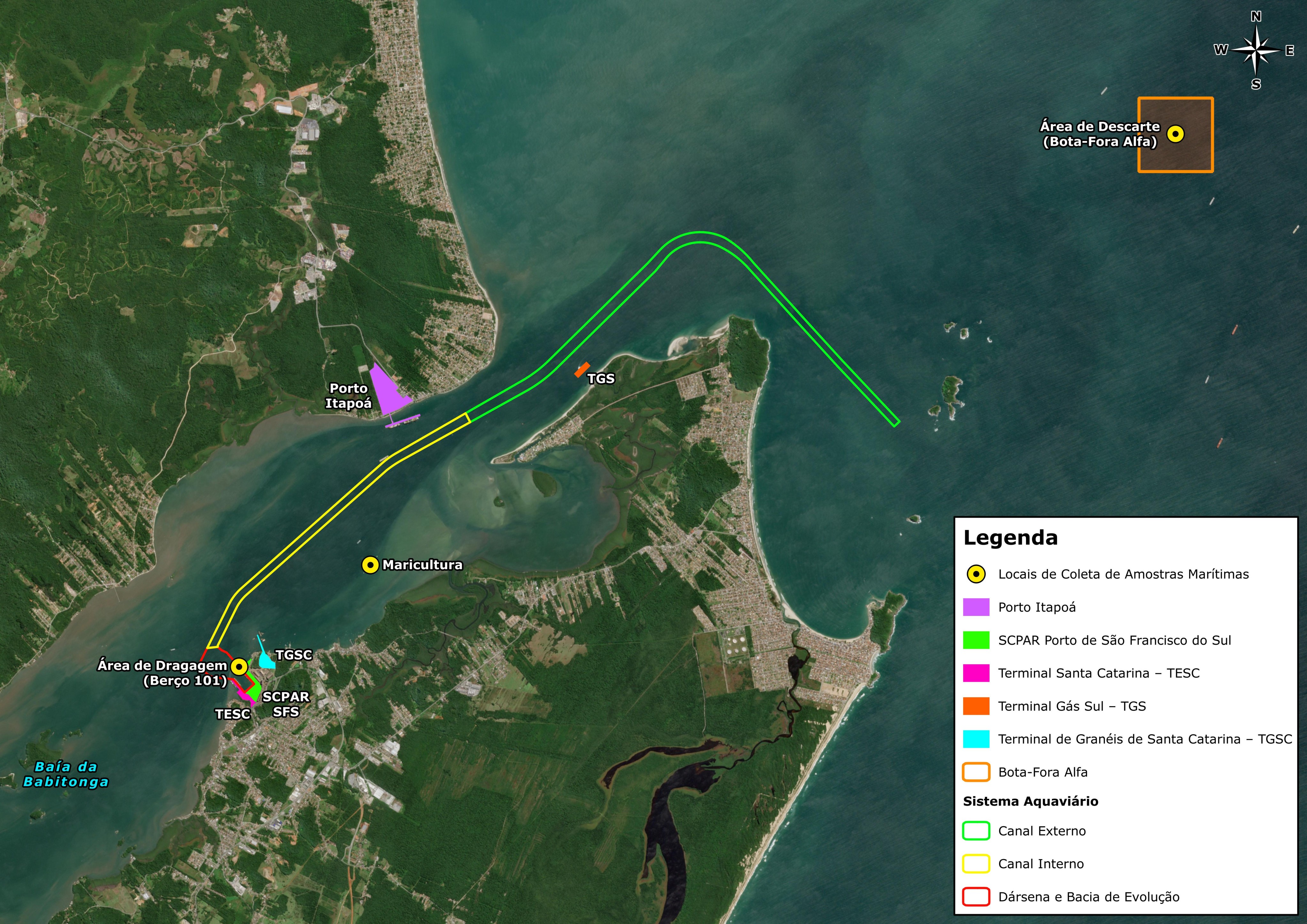 No entorno do Porto de São Francisco do Sul, a dragagem inclui a bacia de evolução, dársena e berços. O valor da obra é de R$ 37 milhões, custeados com recursos da autoridade portuária, e a previsão é que o trabalho demore entre 30 e 40 dias. A estimativa é remover 1,6 milhão de metros cúbicos de sedimentos.
