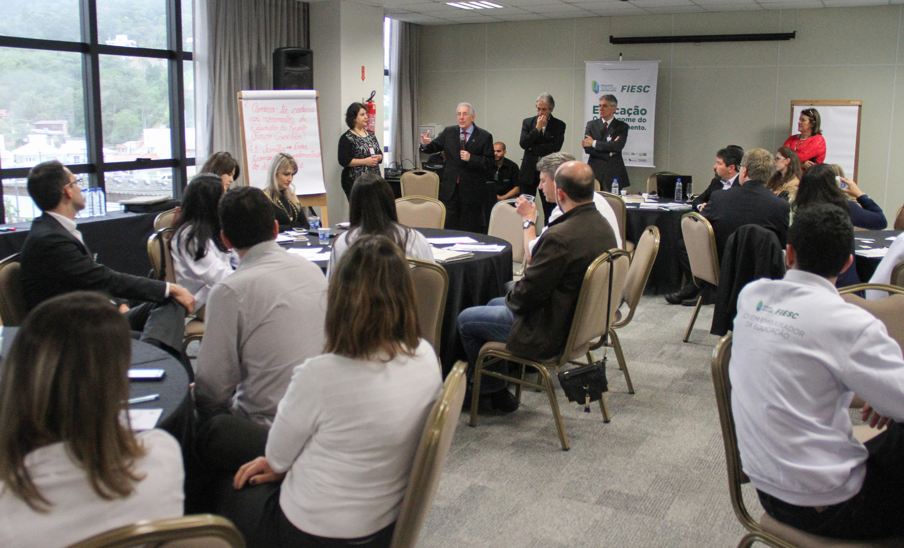 Florianópolis, 21.10.2016 – Jovens embaixadores, voluntários e membros das câmaras regionais e dos comitês locais do Movimento Santa Catarina pela Educação participaram nesta sexta-feira (21) de workshop para traçar estratégias de fortalecimento da iniciativa que completa cinco anos em 2017. O encontro foi realizado na Federação das Indústrias de Santa Catarina (FIESC), em Florianópolis, e reuniu cerca de 100 pessoas.