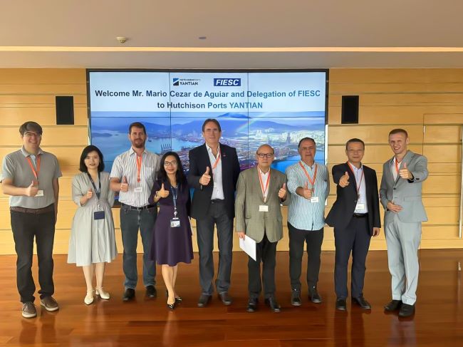 Florianópolis, 17.10.24 - Um dos focos da missão da Federação das Indústrias de SC (FIESC) à China - a visita a terminais portuários na região - levou parte da delegação ao porto de Yantian, um dos maiores do mundo em movimentação de contêineres - responsável por cerca de 10% das cargas globais de contêineres - e o primeiro da China continental em comércio exterior. Operado pelo grupo Hutchison Ports, o terminal da região de Shenzhen, na província de Guangdong, é o terceiro maior porto da China na importação de carnes congeladas, o que faz do porto um destino importante para Santa Catarina. São cerca de 4,5 mil tomadas para contêineres refrigerados (reefers).