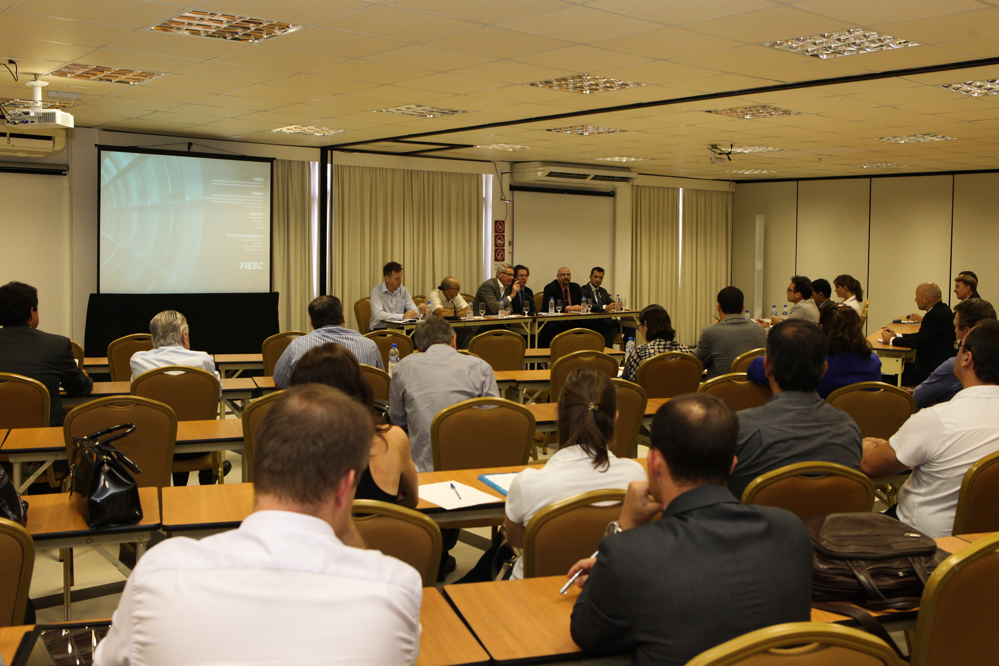 Florianópolis, 16.2.2016 – Durante reunião da Câmara de Assuntos Tributários e Legislativos da Federação das Indústrias de Santa Catarina (FIESC), representantes de indústrias esclareceram dúvidas sobre as novas regras de repartição do ICMS (Imposto sobre Circulação de Mercadorias e Serviços). Com a entrada em vigor da Emenda Constitucional 87, em 1º de janeiro de 2016, foi instituída a divisão do imposto com o Estado de destino do produto − antes o recolhimento era feito para o Estado de fechamento da compra. O encontro foi realizado nesta terça-feira (16), em Florianópolis, e contou com a participação do secretário-adjunto da Secretaria da Fazenda, Almir Gorges, e do diretor de administração tributária da pasta, Carlos Roberto Molim.