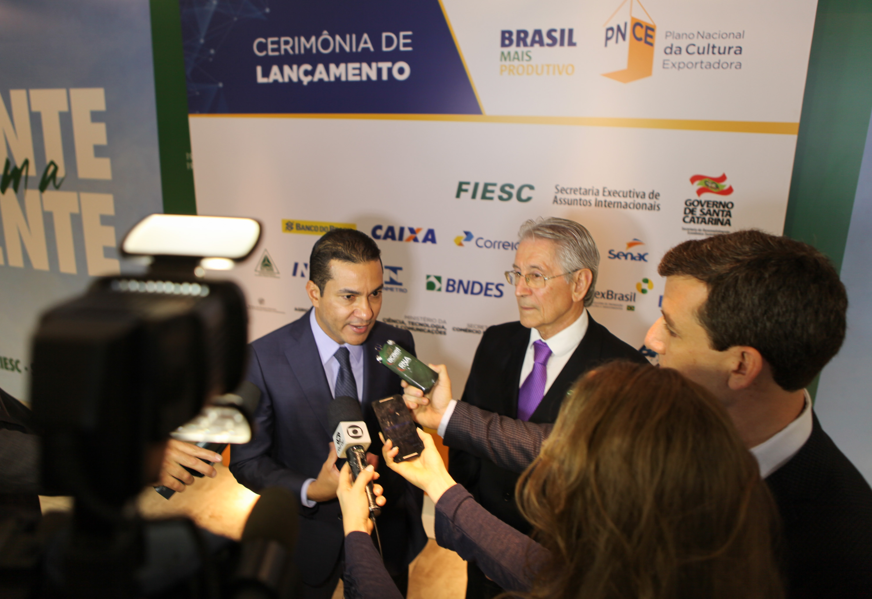 Florianópolis, 6.10.2016 – O Plano Nacional da Cultura Exportadora (PNCE) e o Programa Brasil Mais Produtivo foram lançados oficialmente em Santa Catarina nesta quinta-feira (6), em Florianópolis, na Federação das Indústrias de Santa Catarina (FIESC), com a participação do ministro de Indústria, Comércio Exterior e Serviços (MDIC), Marcos Pereira. No caso do Mais Produtivo, que deverá atender 3 mil indústrias de todo o País, 280 das quais em Santa Catarina, ele antecipou que está em estudo a ampliação do Programa e em breve será anunciado o aumento do número de vagas para 2017. O ministro também informou que ainda este ano será lançada a versão piloto do Brasil Mais Produtivo Eficiência Energética, ação que será aplicada em todo o País no ano que vem.