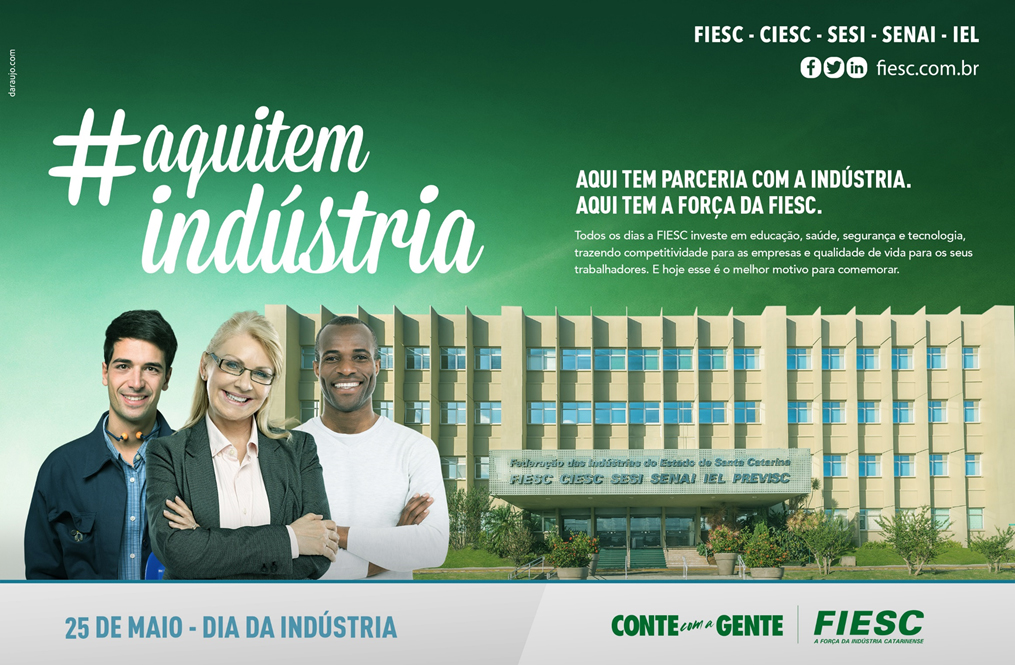 Para comemorar o aniversário da FIESC, a entidade lançou a campanha institucional #aquitemindústria, posicionamento alinhado à Confederação Nacional da Indústria (CNI). Além disso, nesta sexta-feira estão sendo realizadas ações nas unidades de SESI e SENAI no Estado.