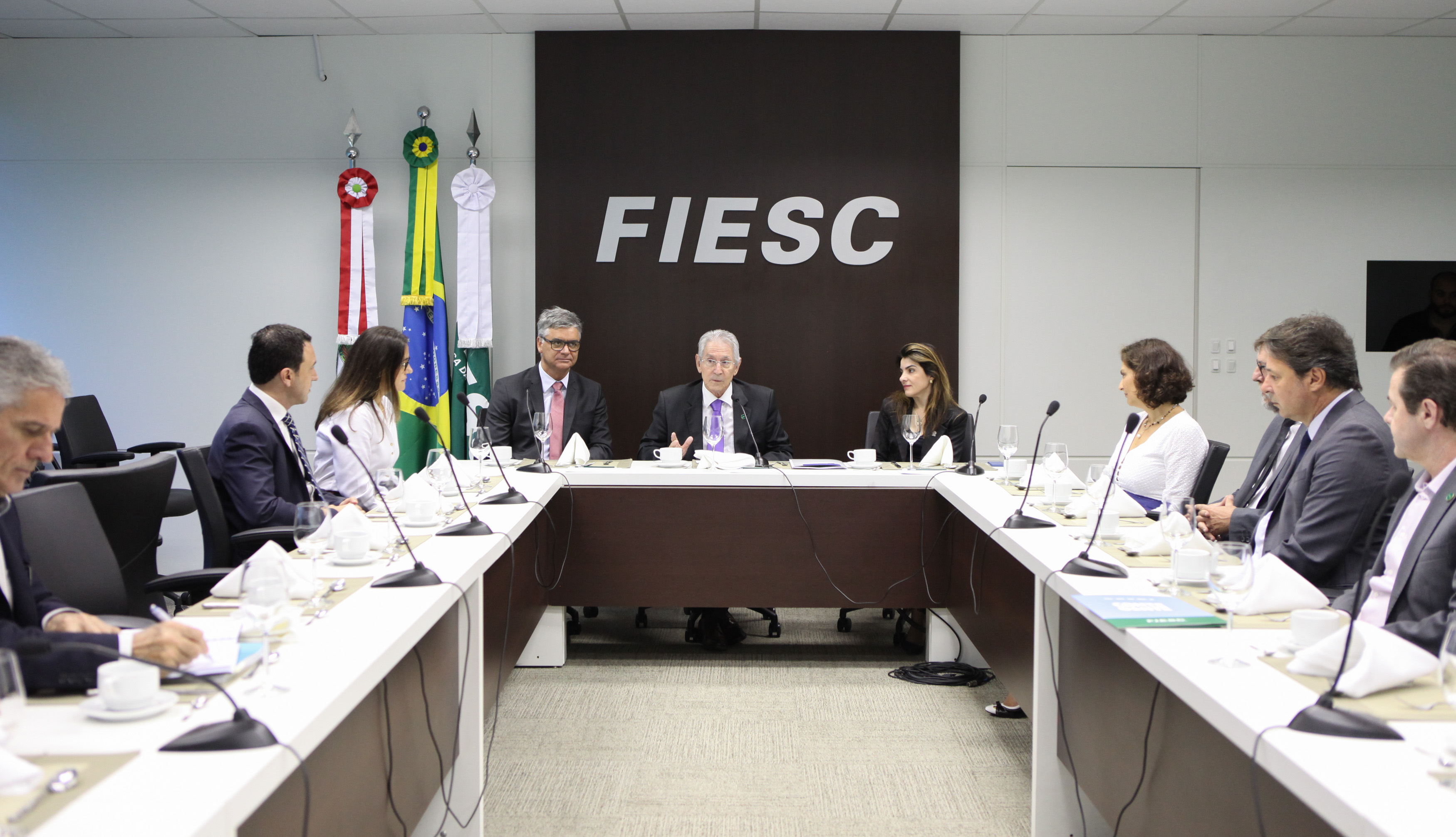Florianópolis, 2.4.2018 – O presidente da Federação das Indústrias de Santa Catarina (FIESC), Glauco José Côrte, recebeu nesta segunda-feira (2) a presidente da Associação dos Magistrados Catarinenses (AMC), Jussara Wandscheer, e o presidente do Tribunal de Justiça de Santa Catarina (TJ/SC), Rodrigo Collaço, para conhecer as metas de 2018 do programa Novos Caminhos. Entre elas, está a de aumentar a inserção no mundo do trabalho dos adolescentes participantes dos cursos de capacitação.