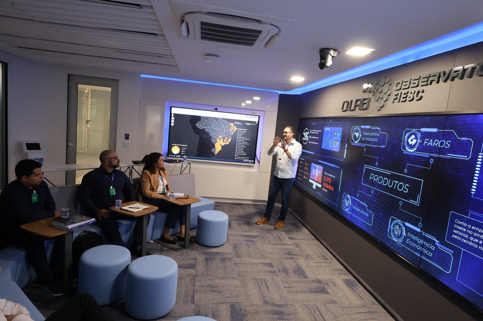 Florianópolis, 13.03.25 - Representantes do Observatório da Federação das Indústrias do Estado de Roraima (FIER) estão em Florianópolis, para uma imersão na sede do Observatório FIESC. O objetivo é conhecer as boas práticas, processos, serviços e tecnologias utilizadas para aprimorar as atividades que estão em fase de estruturação do setor na FIER.