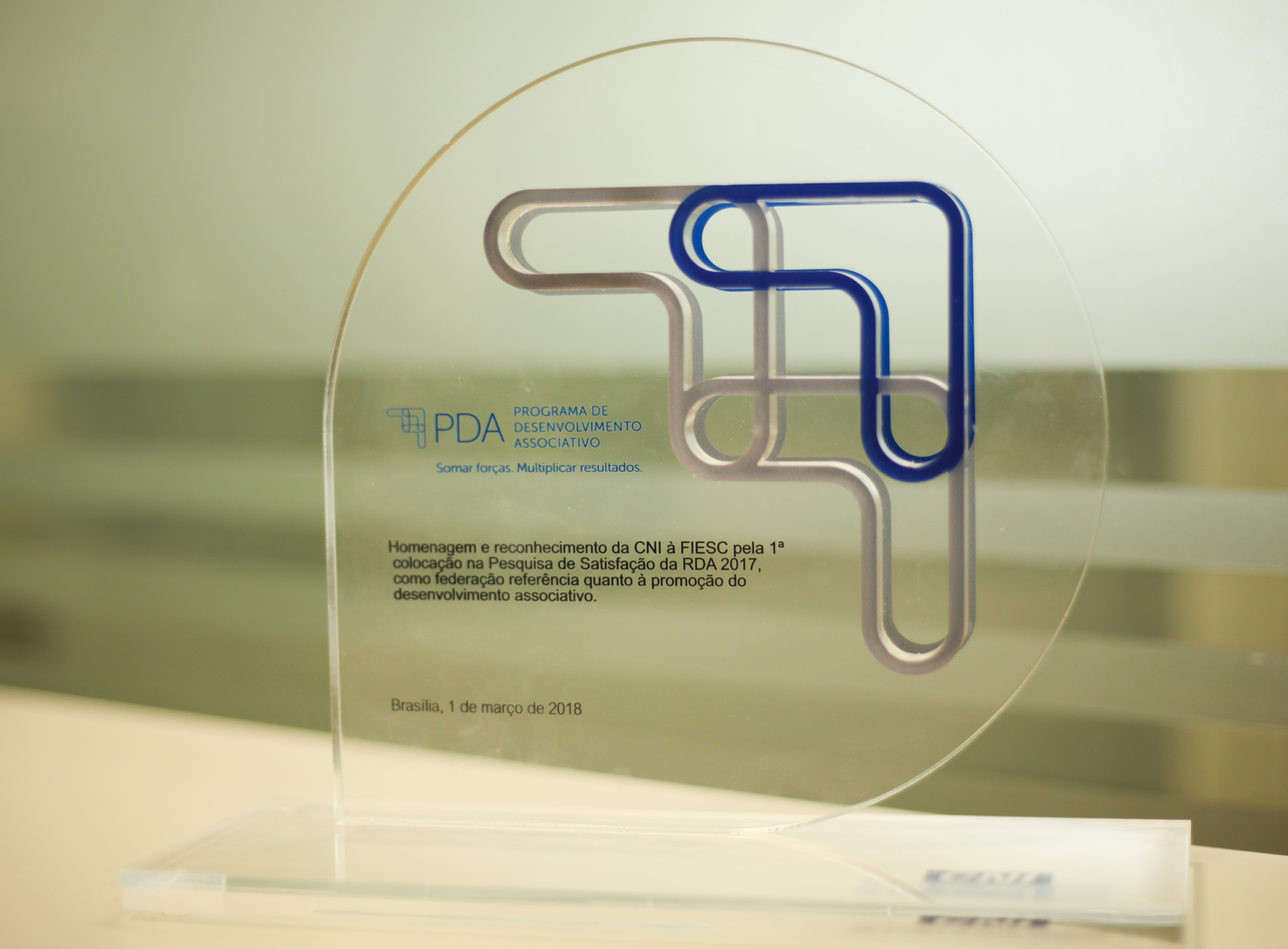 Florianópolis, 7.3.2018 - A Federação das Indústrias de Santa Catarina (FIESC) é líder na promoção do desenvolvimento associativo no País, segundo ano consecutivo em ranking da Confederação Nacional da Indústria (CNI), feito a partir de consulta à Rede de Desenvolvimento Associativo (RDA), composta por técnicos e gestores do Programa de Desenvolvimento Associativo (PDA), executado pelas federações de indústria do Brasil. O troféu foi entregue no dia 1º de março, durante o 22º Encontro da RDA em Brasília. A segunda posição ficou com a Federação do Mato Grosso e a terceira com a da Bahia.
