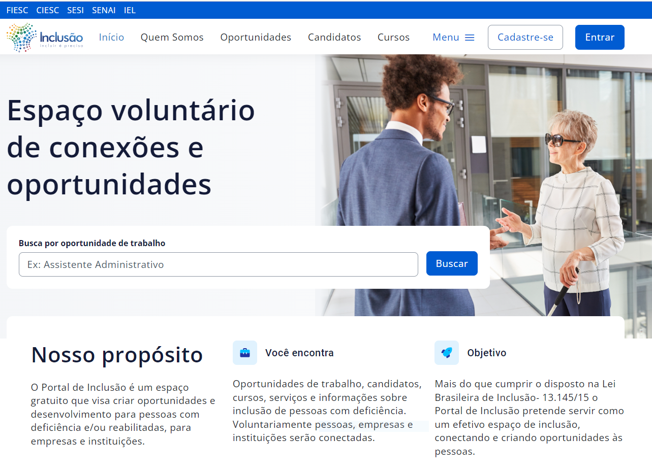 O Portal de Inclusão é mantido pela FIESC no âmbito das ações de responsabilidade social, que objetivam contribuir com o desenvolvimento social e econômico em Santa Catarina.