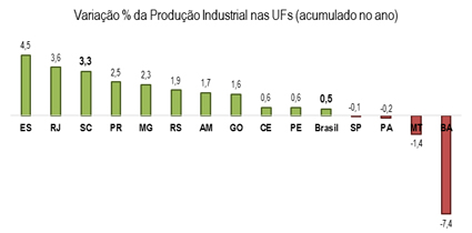 Resultado catarinense no acumulado do ano é o 3º melhor do País. Desempenho decorre da ampliação da produção em oito dos doze setores avaliados