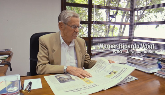 Florianópolis, 01.3.2016 – A nova edição do programa Histórias da Indústria, da Federação das Indústrias de Santa Catarina (FIESC), conta a trajetória do empreendedor Werner Ricardo Voigt, um dos fundadores da WEG, de Jaraguá do Sul. O audiovisual, produzido pela TV Indústria SC, foi lançado na reunião de diretoria da Federação, na sexta sexta-feira (26).