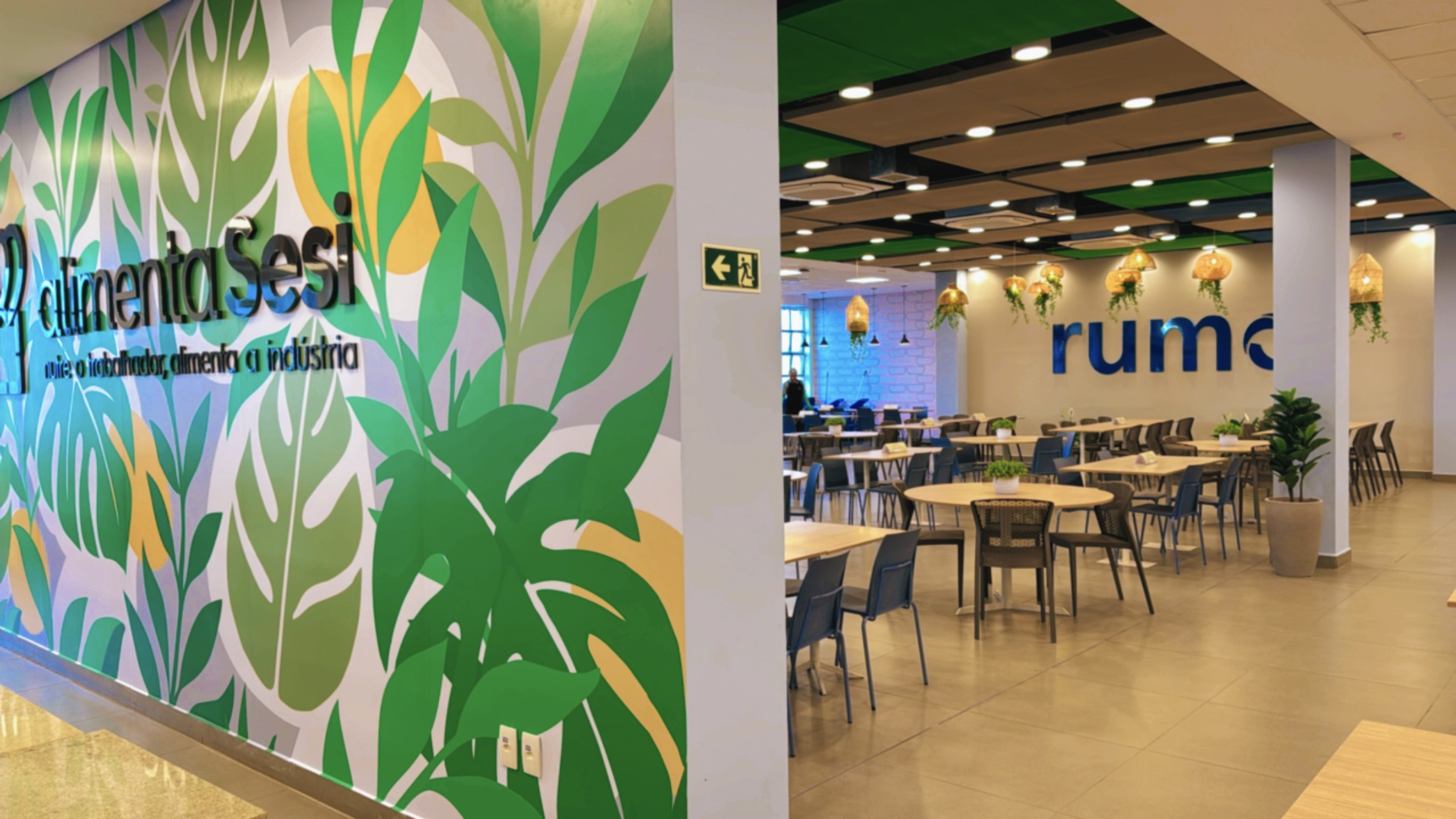 O restaurante está instalado na Rumo, empresa de logística ferroviária que opera 14 mil quilômetros de linhas e conecta as principais regiões produtoras aos quatro maiores portos do país.