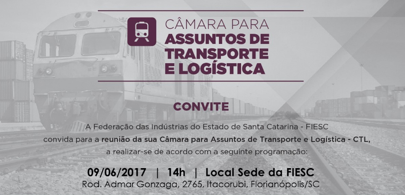 Florianópolis, 1.6.2017 – A Câmara de Assuntos de Transporte e Logística da Federação das Indústrias de Santa Catarina (FIESC) debate a situação atual do projeto do lote 1 da Ferrovia Litorânea, com a presença do coordenador de construções ferroviárias do DNIT, Jean Carlo Trevisolo de Souza. O encontro será no dia 9 de junho, às 14 horas, na FIESC, em Florianópolis. Os interessados em participar devem confirmar a presença aqui. Para mais informações clique aqui