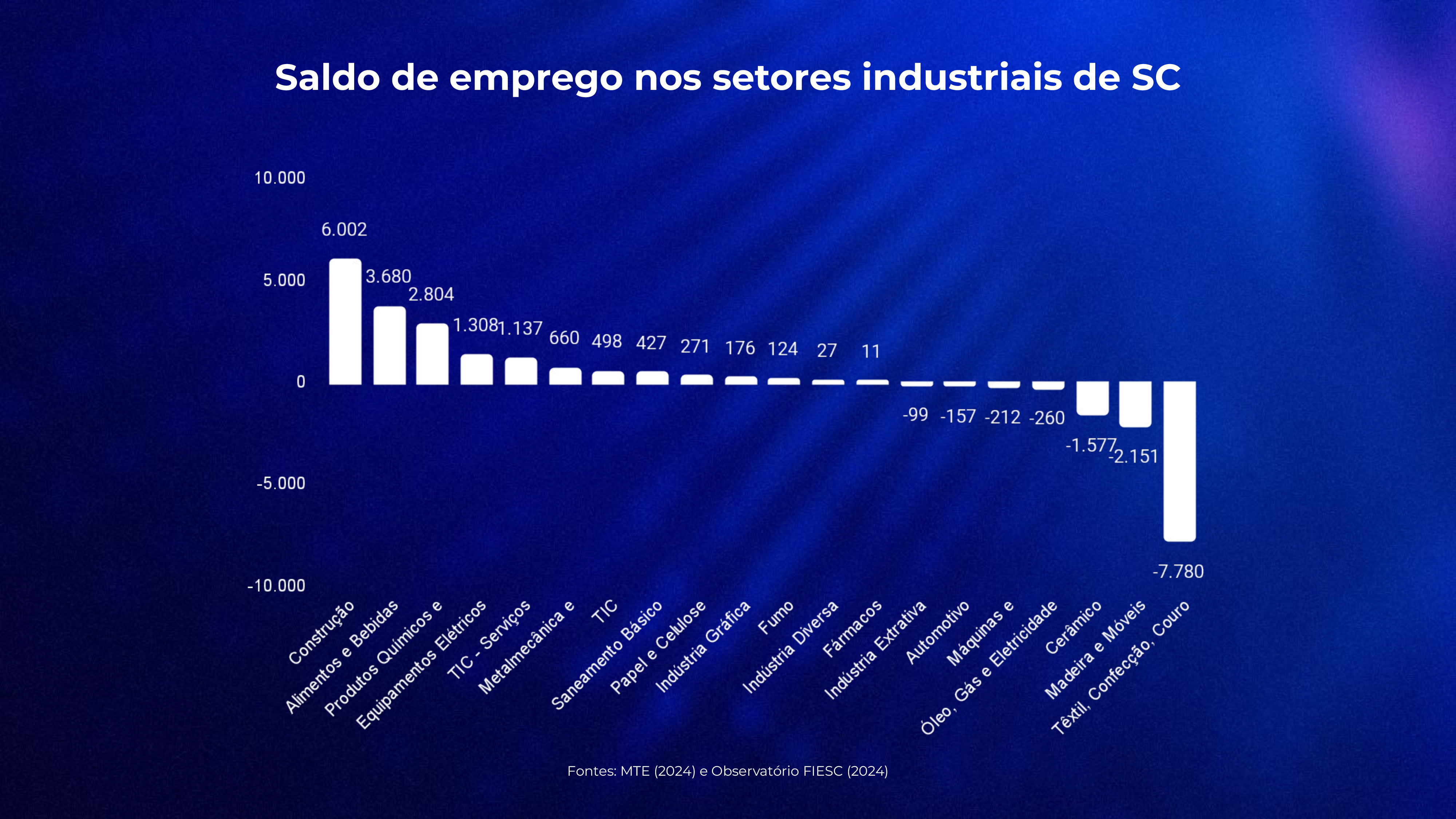“A indústria de transformação catarinense sofreu com o fechamento de vagas em setores que tradicionalmente empregam muito e são importantes para o estado, como o têxtil e o moveleiro. Esses segmentos têm enfrentado desafios setoriais que acabam impactando o estado todo”, destacou o presidente da Federação das Indústrias de Santa Catarina (FIESC), Mario Cezar de Aguiar.