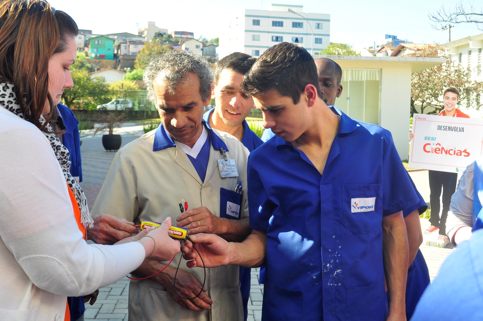 Florianópolis, 28.7.2016 – Cerca de 700 colaboradores da empresa Viposa, de Caçador, participaram nos dias 21 e 22 de julho de capacitação do programa SESI Ciências. A unidade móvel do projeto esteve à disposição dos trabalhadores que realizaram atividades em ilhas de trabalho equipadas com materiais que dão suporte aos experimentos científicos. O objetivo foi disseminar a cultura de inovação e contribuir para o letramento científico e tecnológico.