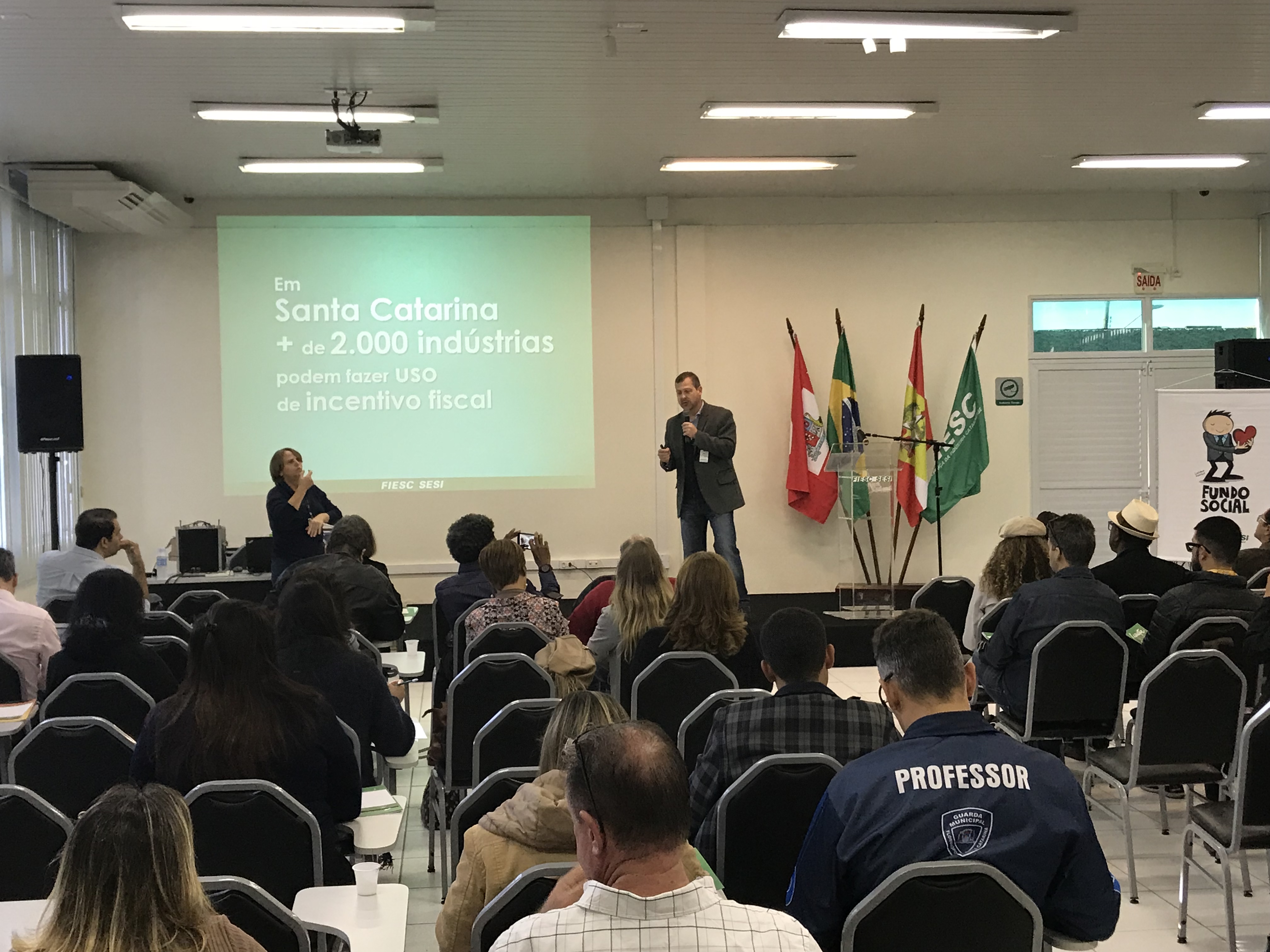 São José, 20.6.2018 – A Federação das Indústrias de Santa Catarina (FIESC), por meio do SESI, em parceria com a ENGIE Brasil Energia e a Incentive, promoveram em São José capacitações para orientar entidades do terceiro setor interessadas em captar recursos através de leis de incentivo fiscal. Representantes de organizações sociais que atuam nas áreas de cultura, esporte, saúde, infância e adolescência e terceira idade receberam informações detalhadas sobre como desenvolver projetos que atendam às diversas normas constantes na legislação federal. O evento ocorreu nessa quarta, dia 20.