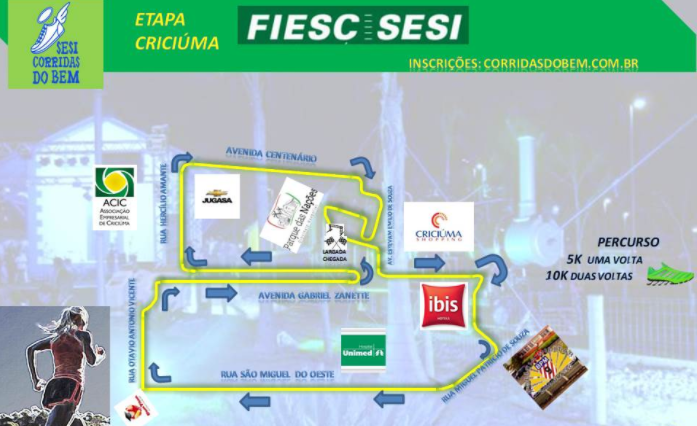 Em Criciúma, o SESI Corridas do Bem é realizado em conjunto com a Casa Guido – Grupo pela Unidade Infanto Juvenil de Onco-Hematologia, entidade beneficiada. A YUP Brinquedos, que participará do evento, também fará o repasse de 20% da receita arrecadada com a venda dos passaportes para a Casa Guido.