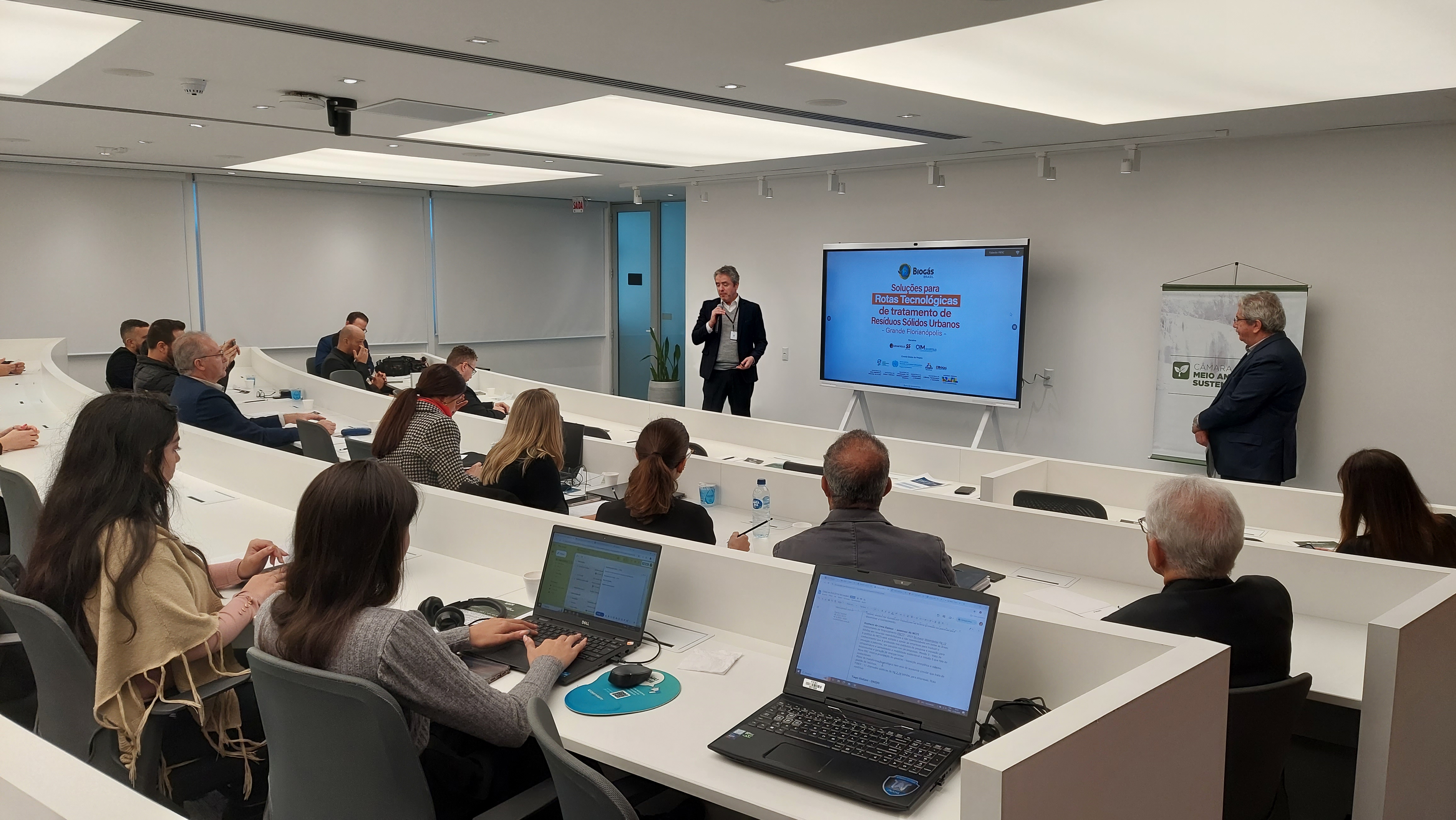 Florianópolis, 28.06.24 - O Consórcio Intermunicipal Multifinalitário da Grande Florianópolis (CIM-Granfpolis) e a Organização das Nações Unidas para o Desenvolvimento Industrial (UNIDO), que implementa o projeto GEF Biogás Brasil, apresentaram alternativas para gestão e tratamento de resíduos sólidos nos 22 municípios da região em reunião nesta quinta-feira (27) na Federação das Indústrias de SC (FIESC).