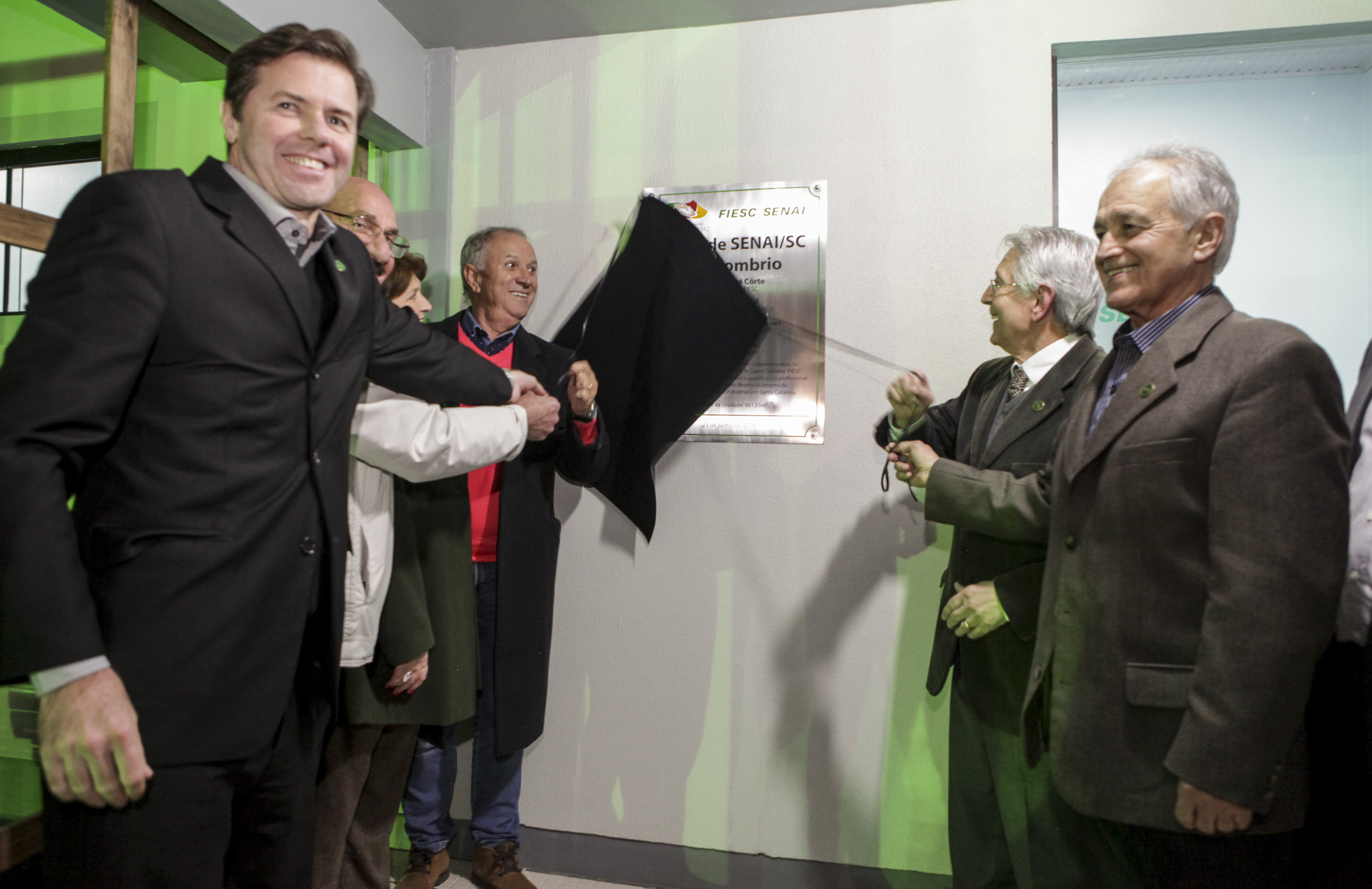Sombrio, 23.6.2016 – A Federação das Indústrias de Santa Catarina (FIESC) entregou, na noite desta quinta -feira (23), a nova unidade do SENAI em Sombrio. A estrutura tem 900 metros quadrados de área construída e atenderá em torno de 600 alunos por ano. Oferecerá cursos de educação profissional nas áreas de tecnologia da informação, vestuário, metalmecânica, segurança do trabalho, gestão empresarial, construção civil, cerâmica, eletromecânica e alimentos.