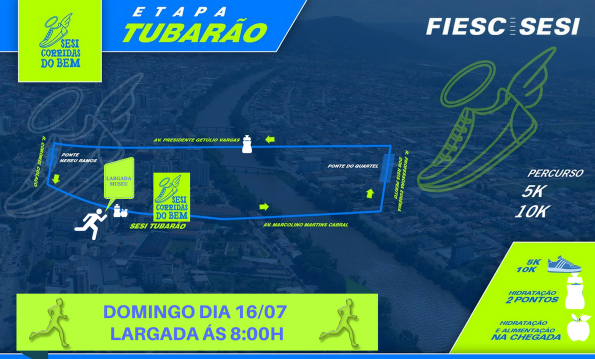 Em Tubarão, o SESI Corridas do Bem é realizado em conjunto com a Fundação Educacional Joana de Angelis. A iniciativa pretende estimular, além da adoção de hábitos saudáveis e o contato entre os atletas, fazer o bem por meio da prática do voluntariado. Até o final do ano, as Corridas do Bem terão contabilizado 16 etapas e parte dos recursos gerados será revertida para instituições beneficentes.