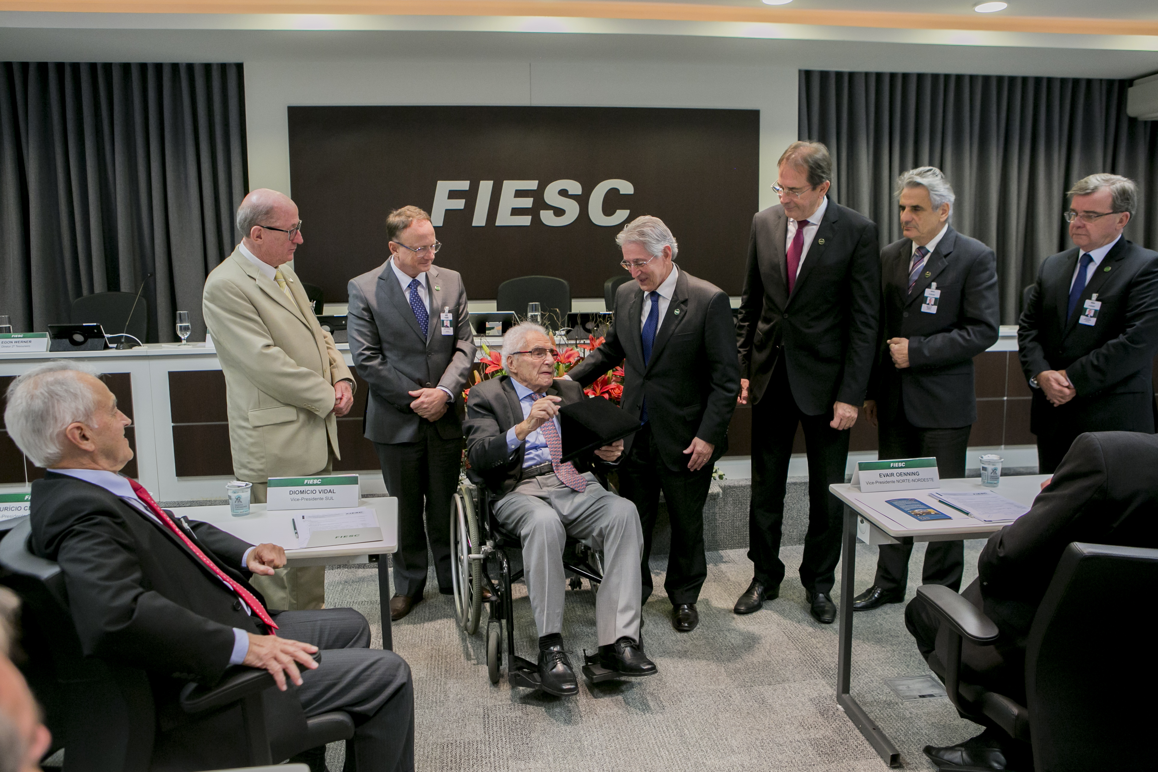 “Estou me aproximando dos cem anos em julho e vou chegar bem. Vocês não podem imaginar a minha satisfação de estar aqui hoje. Santa Catarina me deu tudo, inclusive a possibilidade de progredir pessoalmente, que significa fazer alguma coisa em benefício da comunidade. E isso eu consegui. Tenho a satisfação de estar com vocês, industriais de Santa Catarina”, declarou Fontana.