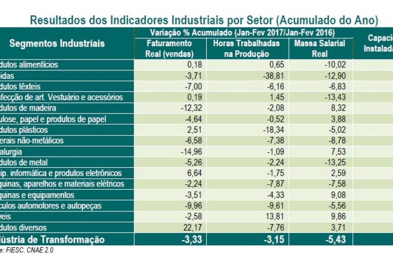 • Faturamento da indústria de SC acumula queda de 3,3% no bimestre